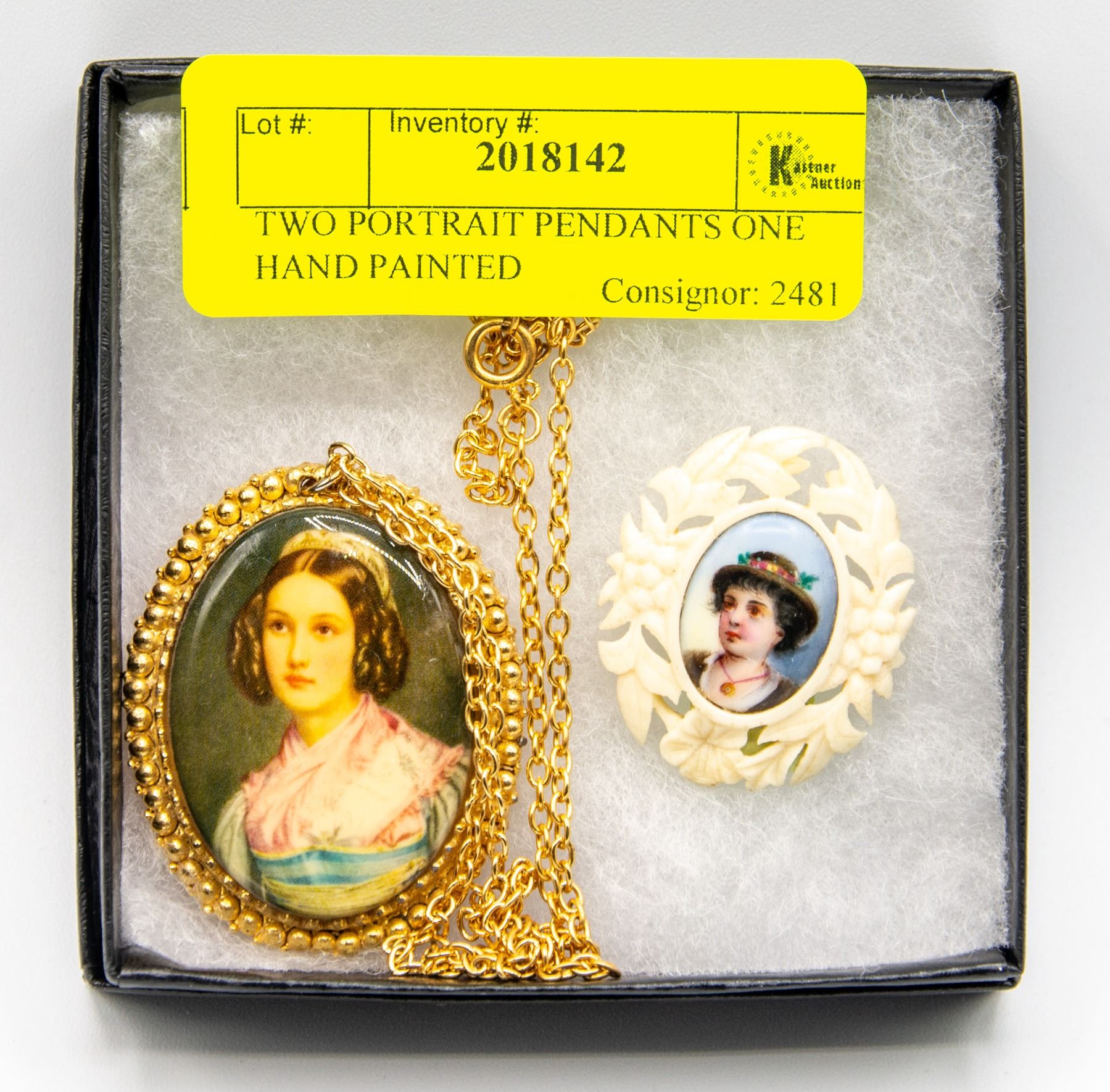 TWO PORTRAIT PENDANTS ONE HAND PAINTED