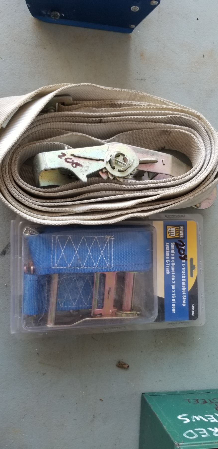 TWO RATCHET STRAPS 2" , ONE WITH E TRACK