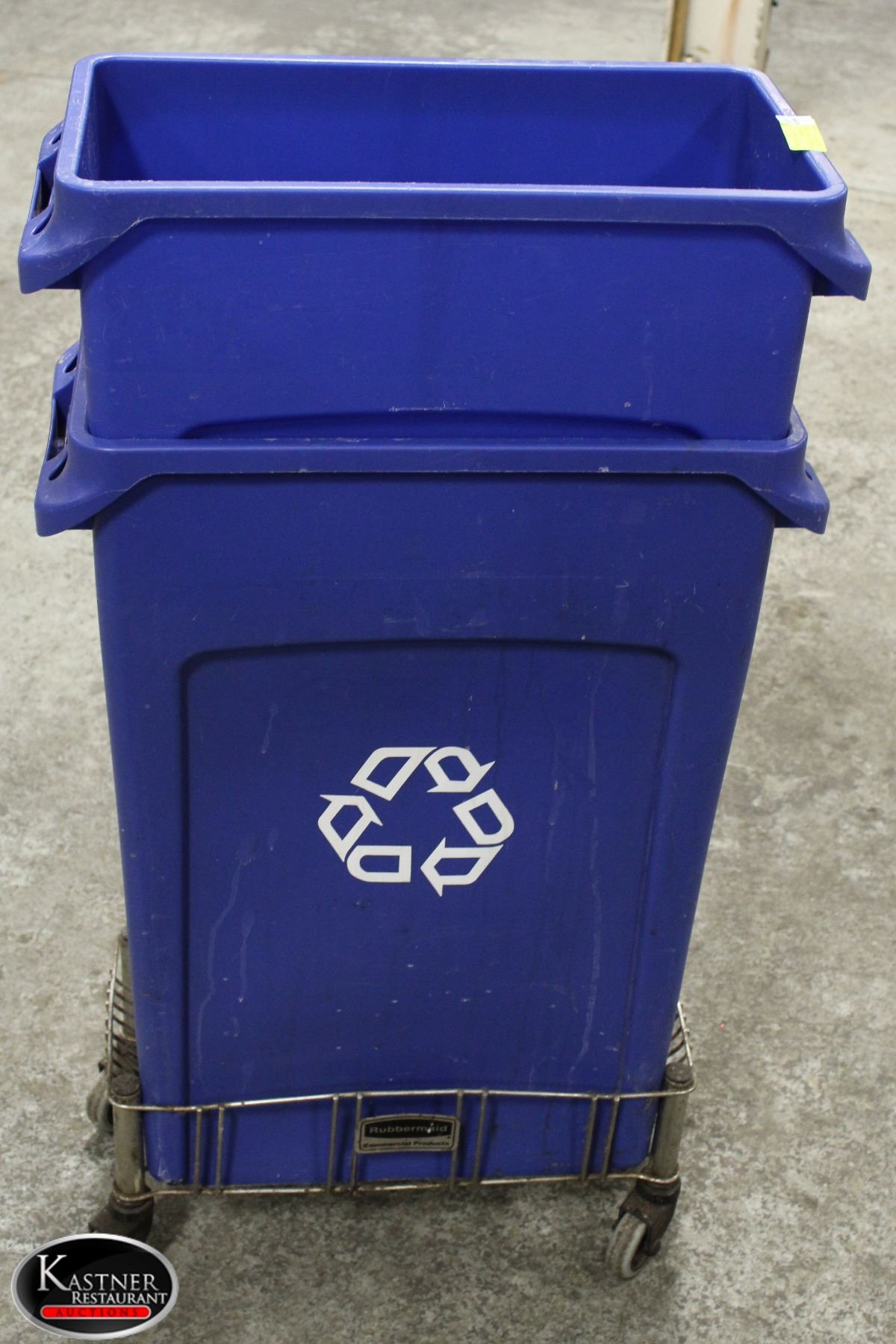 TWO RECYCLING BINS W/ ONE CART ON CASTORS