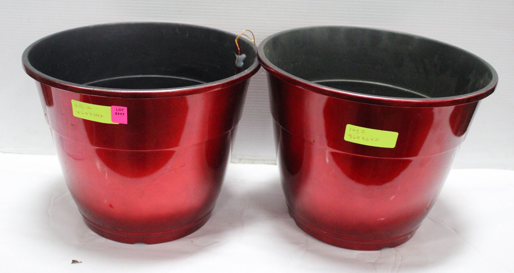 TWO RED PLANTERS,13 1/2 IN X 10 1/2 INCHES