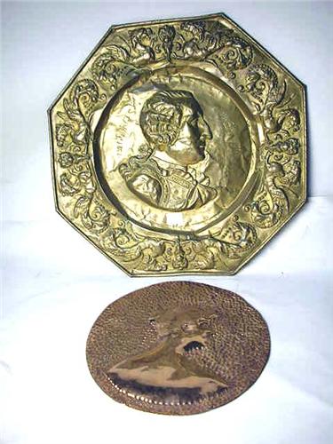 TWO REPOUSSE PLAQUES; One depicting a classical bust, the other George Washington Largest: 25"d