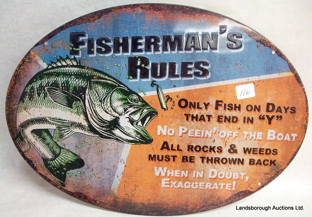 WELCOME AND FISHERMANS RULES. 17 IN X 12 IN.