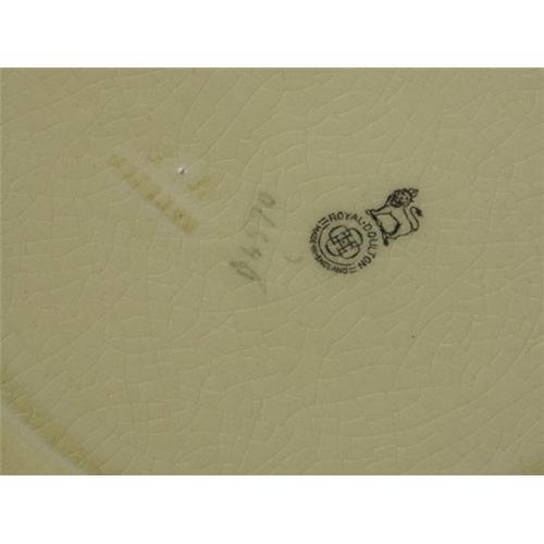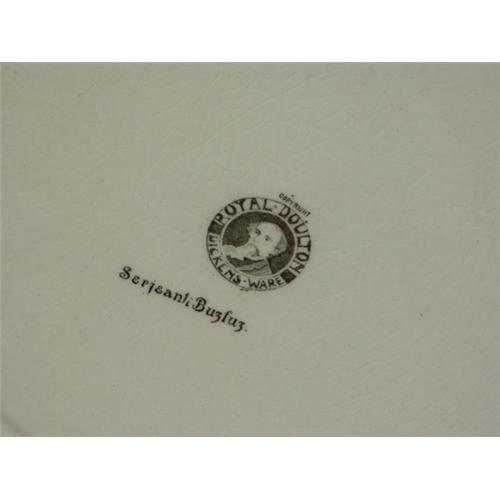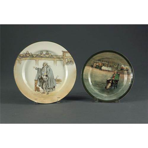 PORCELAIN: Two Royal Doulton porcelain plates to include a Dickens Ware ''Serjeant Buzfuz'' plate, 10 3/8'', and an additional Royal Doulton plate depicting a gentleman seated with a dog in a domestic setting, 8 3/4'', some paint loss under glaze noted on rim and a tiny flea bit noted o underside of rim of second plate.