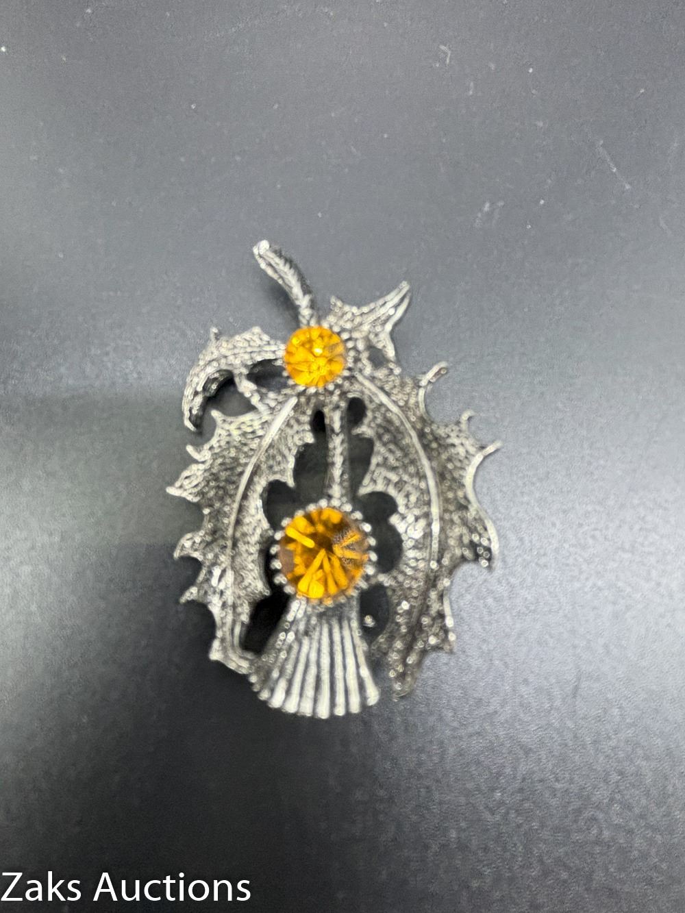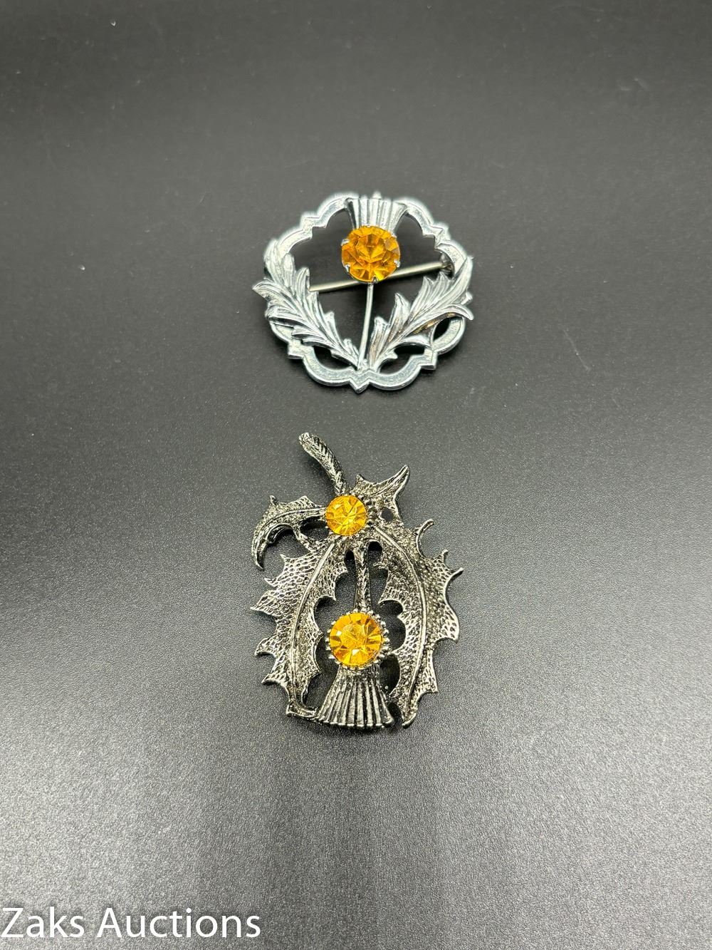 TWO SCOTTISH AMBER CRYSTAL BROOCHES