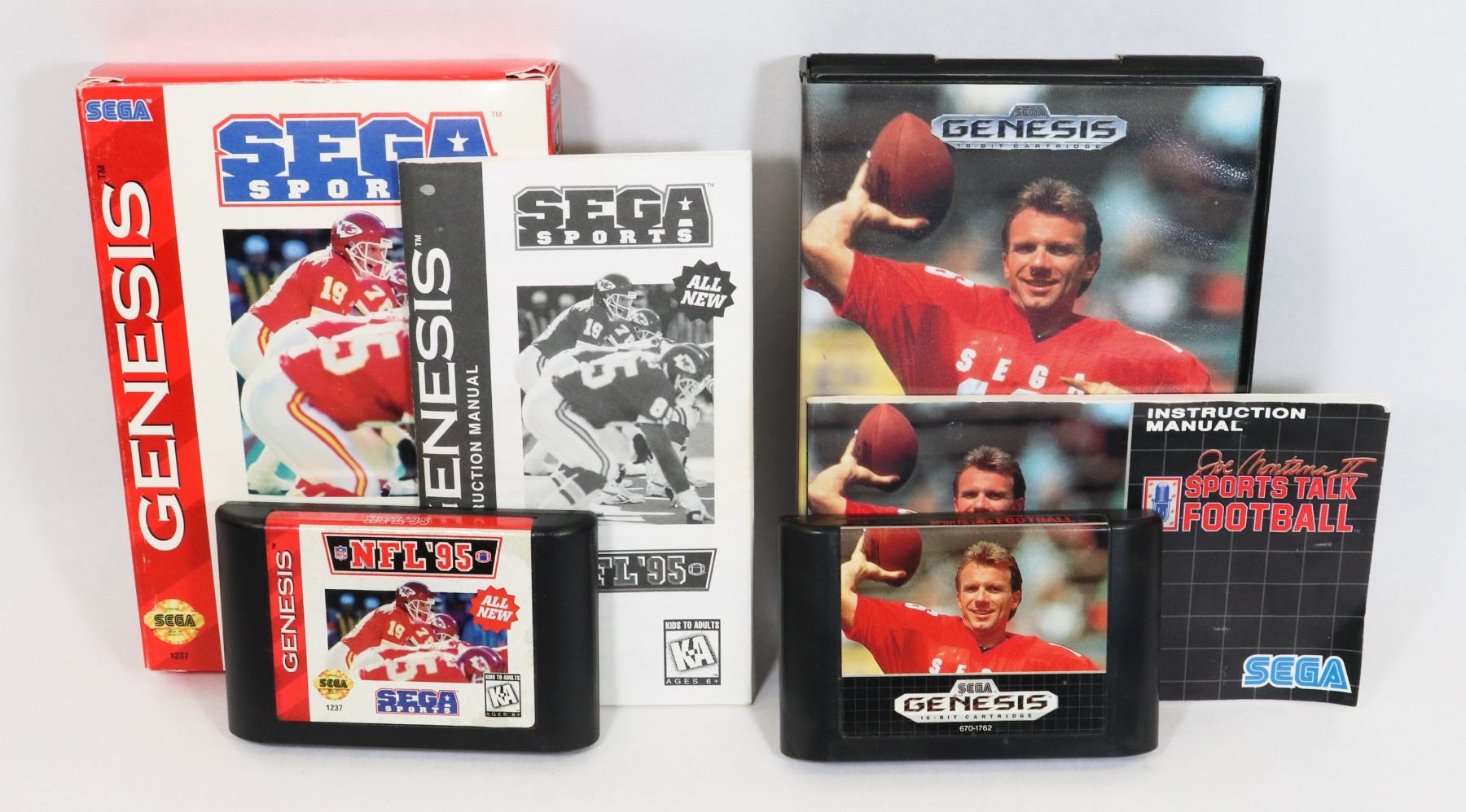TALK FOOTBALL GAME CIB, AND SEGA GENESIS SEGA SPORTS NFL 95 GAME CIB. BOTH TESTED AND WORKING. SOLD WITH SEGA BATMAN POSTER