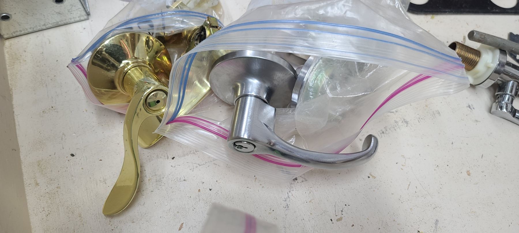 TWO SETS OF DOOR KNOBS AND ABS/PIPE SEALER, WAX