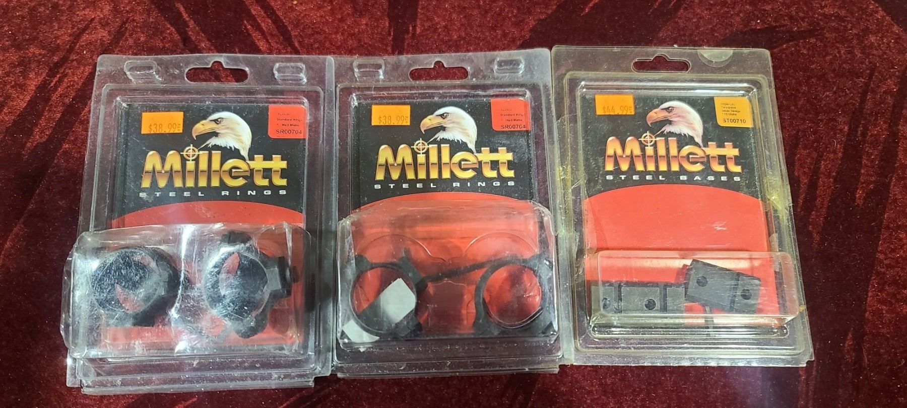 TWO SETS OF MILLET TURN-IN STANDARD 1" MED AND 110 SAVAGE BASE