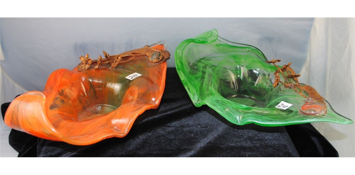 TWO SIGNED "ROMANIAN" ART GLASS BOWLS - SIGNED "MITU" (HE IS A VERY IMPORTANT EUROPEAN ARTS ) IN THE ART NOUVEAU STYLE - SOLD PER PIECE TIME 2 - NO DAMAGE