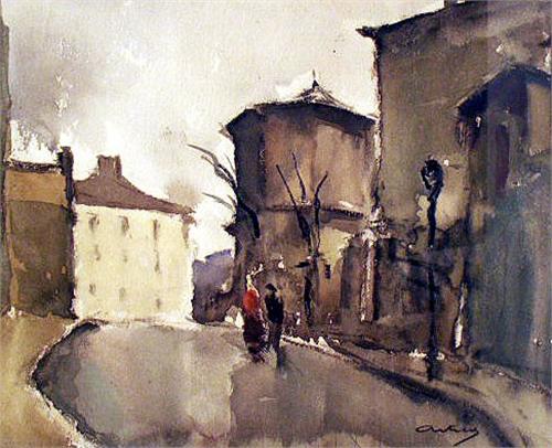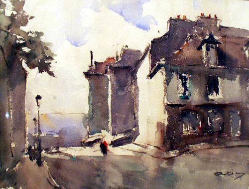 Each depicting European street scenes, each bears signature lr, the verso of one bears a Dutch gallery label indicating the artist as A.J. Heijdenrijk, Jr. From approximately 7 3/4"h x 9 1/2"w to 8 3/4"h x 11 1/2"w.