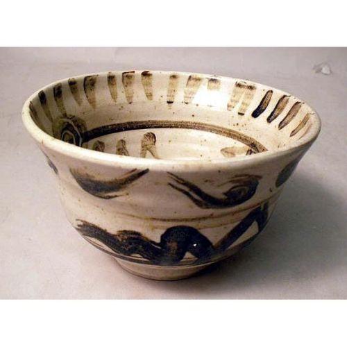 TWO SIMILAR GLAZED BOWLS<BR><BR>The underside of the larger inscribed (Kurt) Mangus. The smaller incised K.M. From: 4"h to 4 1/2"h