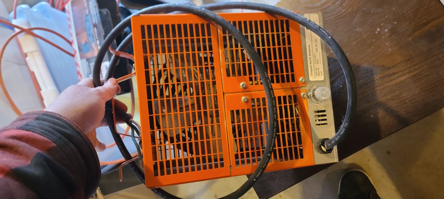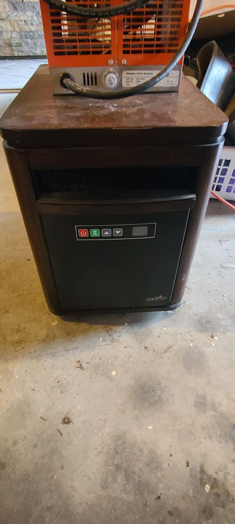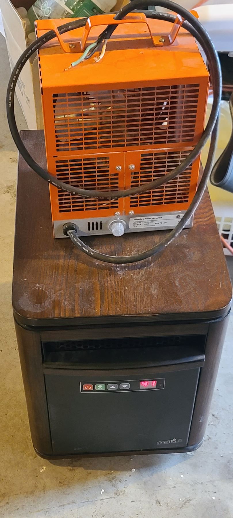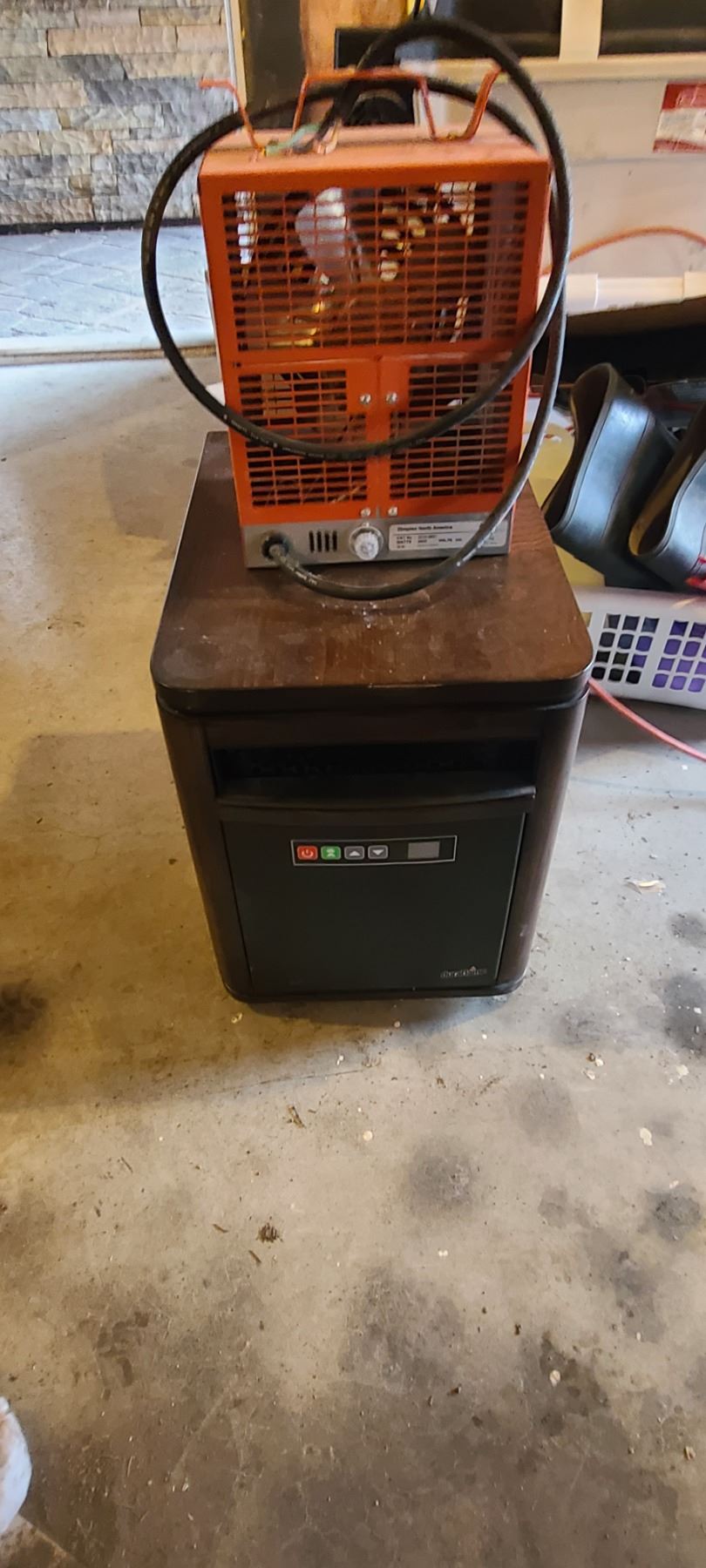 TWO SPACE HEATERS: ONE INDOOR WITH REMOTE AND ONE CONSTRUCTION WITHOUT PLUG