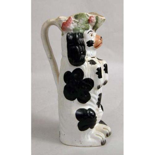 TWO STAFFORDSHIRE PIECES<BR><BR>A Staffordshire King Charles Spaniel pitcher, old chip on rim, and a Staffordshire figural of Admiral Nelson, tallest, 11-1/2"h