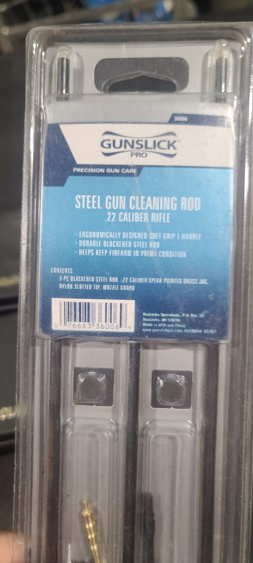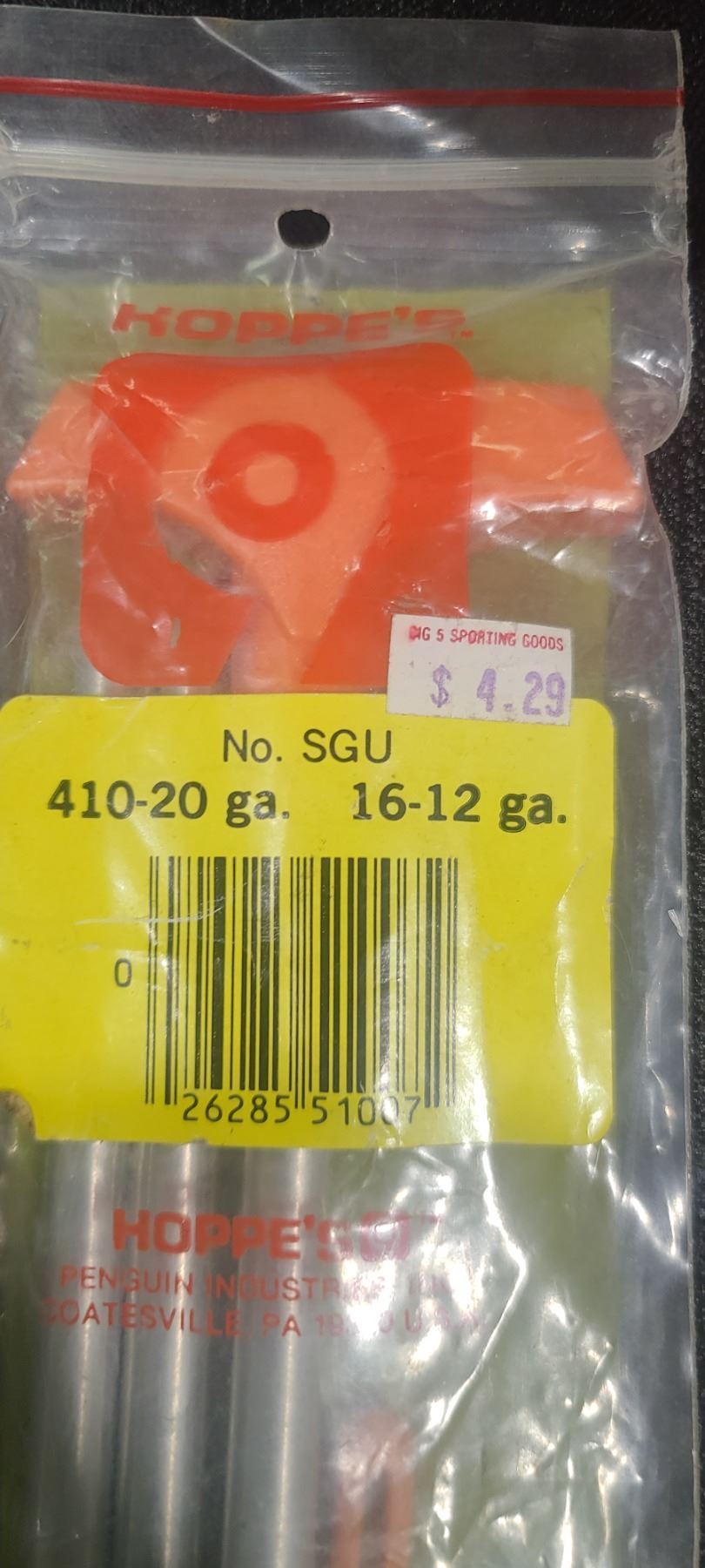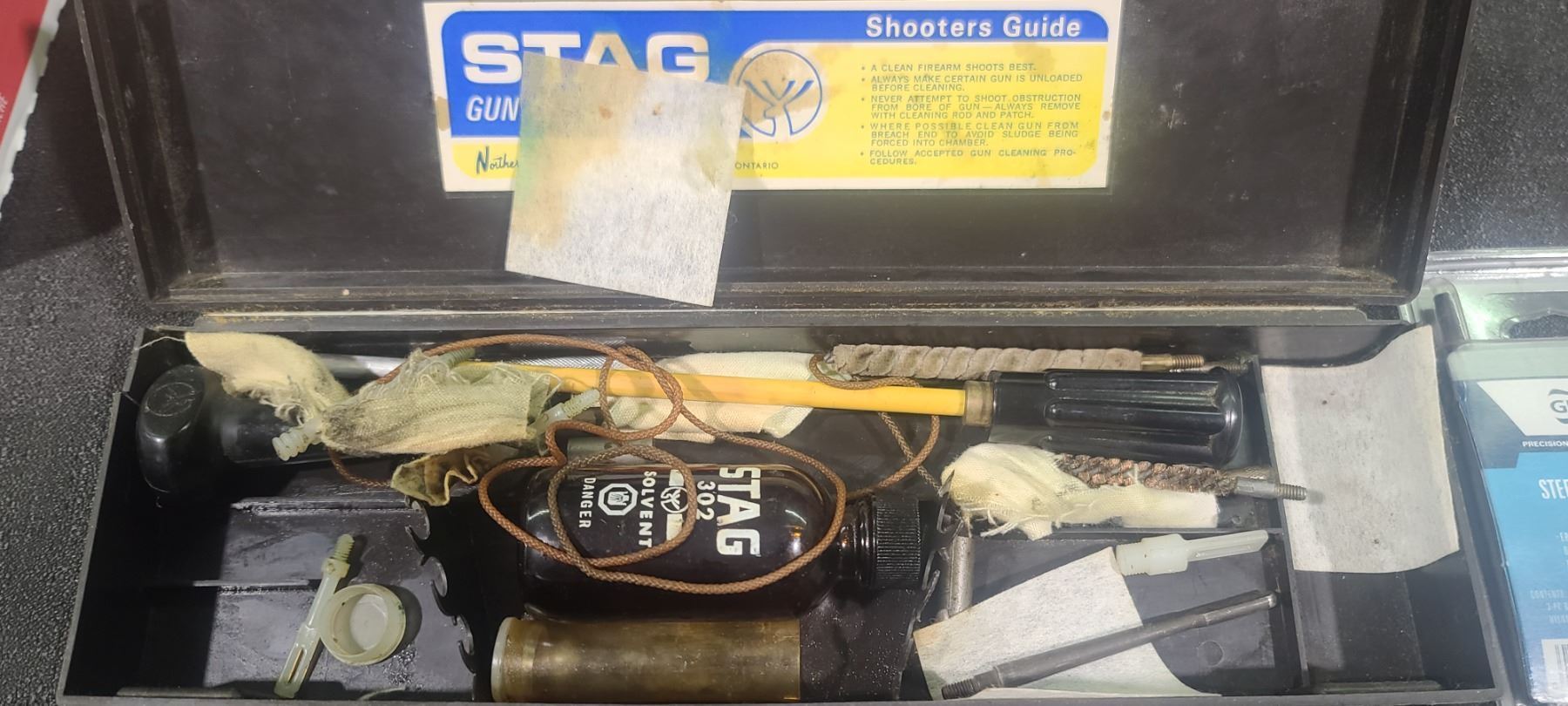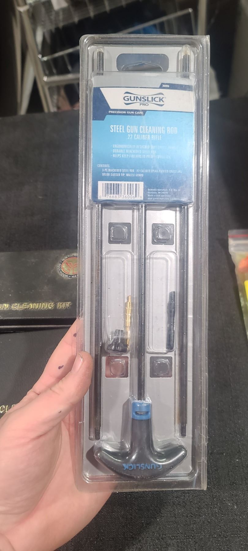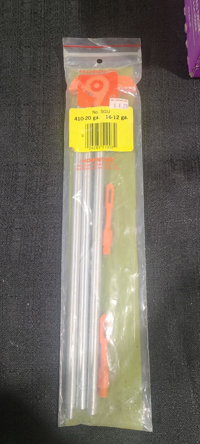 TWO STAG GUN CLEANING KITS, ONE GUNSLICK .22CAL CLEANING ROD, AND HOPPES .410 TO 20GA AND 16GA TO 12GA CLLEANING RODS