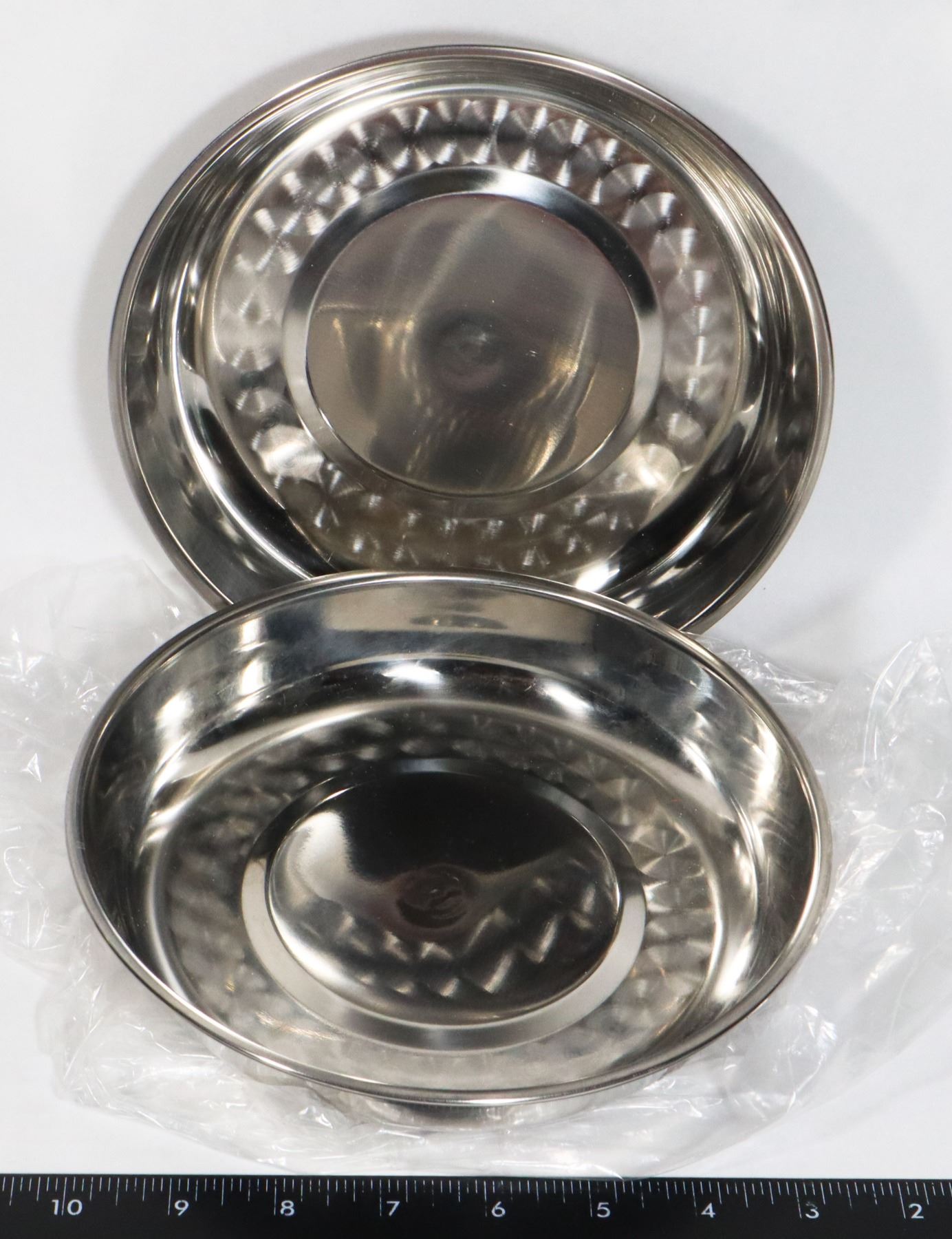 TWO STAINLESS STEEL DOG DISHES