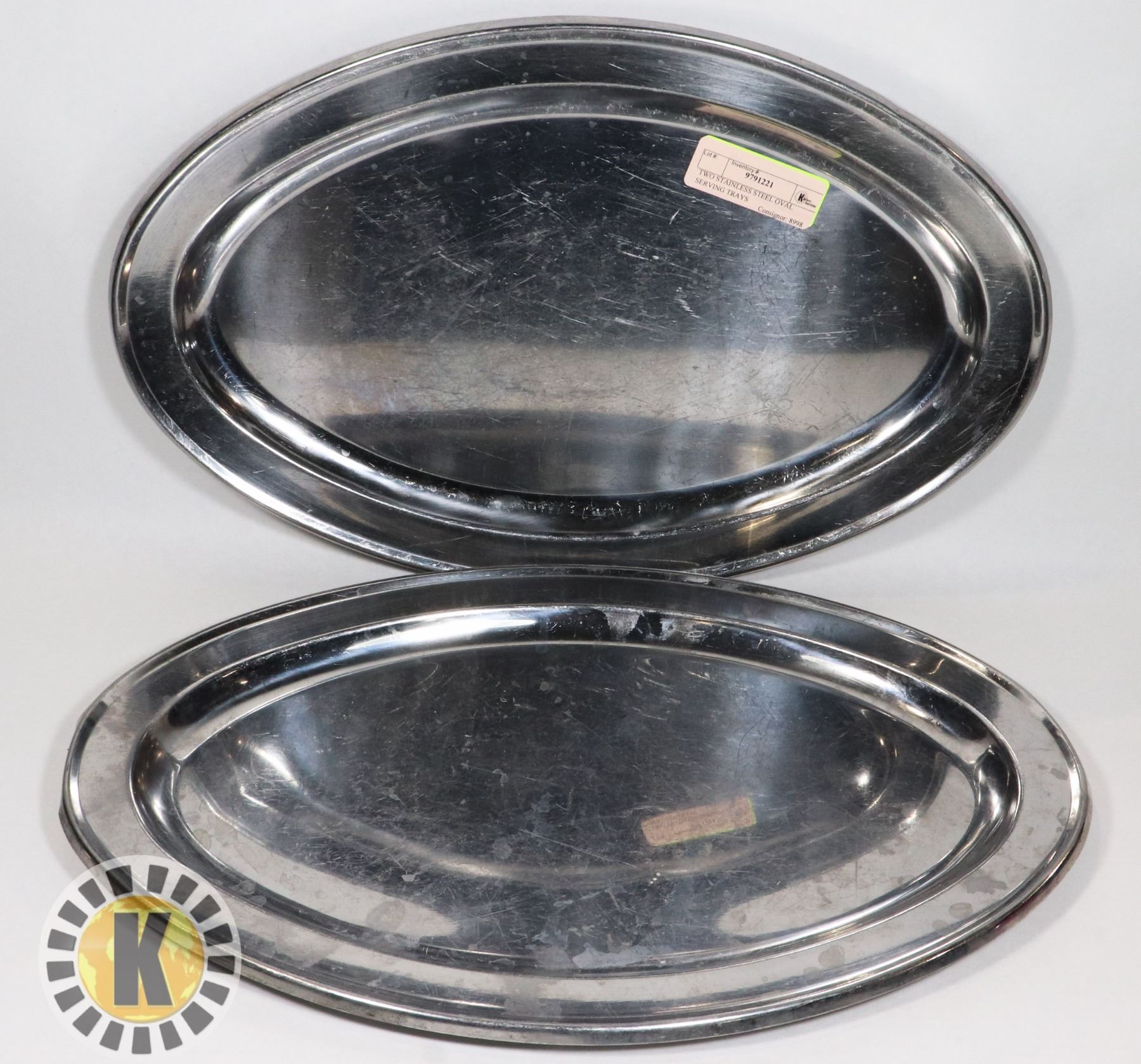 TWO STAINLESS STEEL OVAL SERVING TRAYS