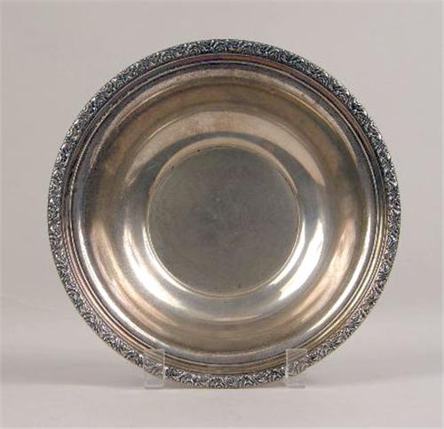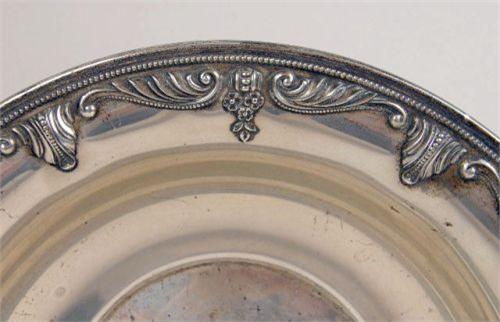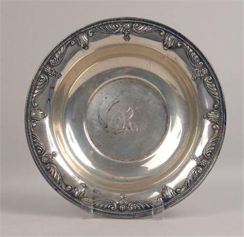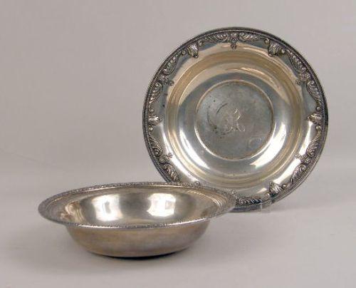 Comprising a Wallace "Stradivari" pattern #4750, centered "R" monogram, and an Alvin #S109 with floral border, total weight apx. 16 T.O. 10", 9" dia., respectively