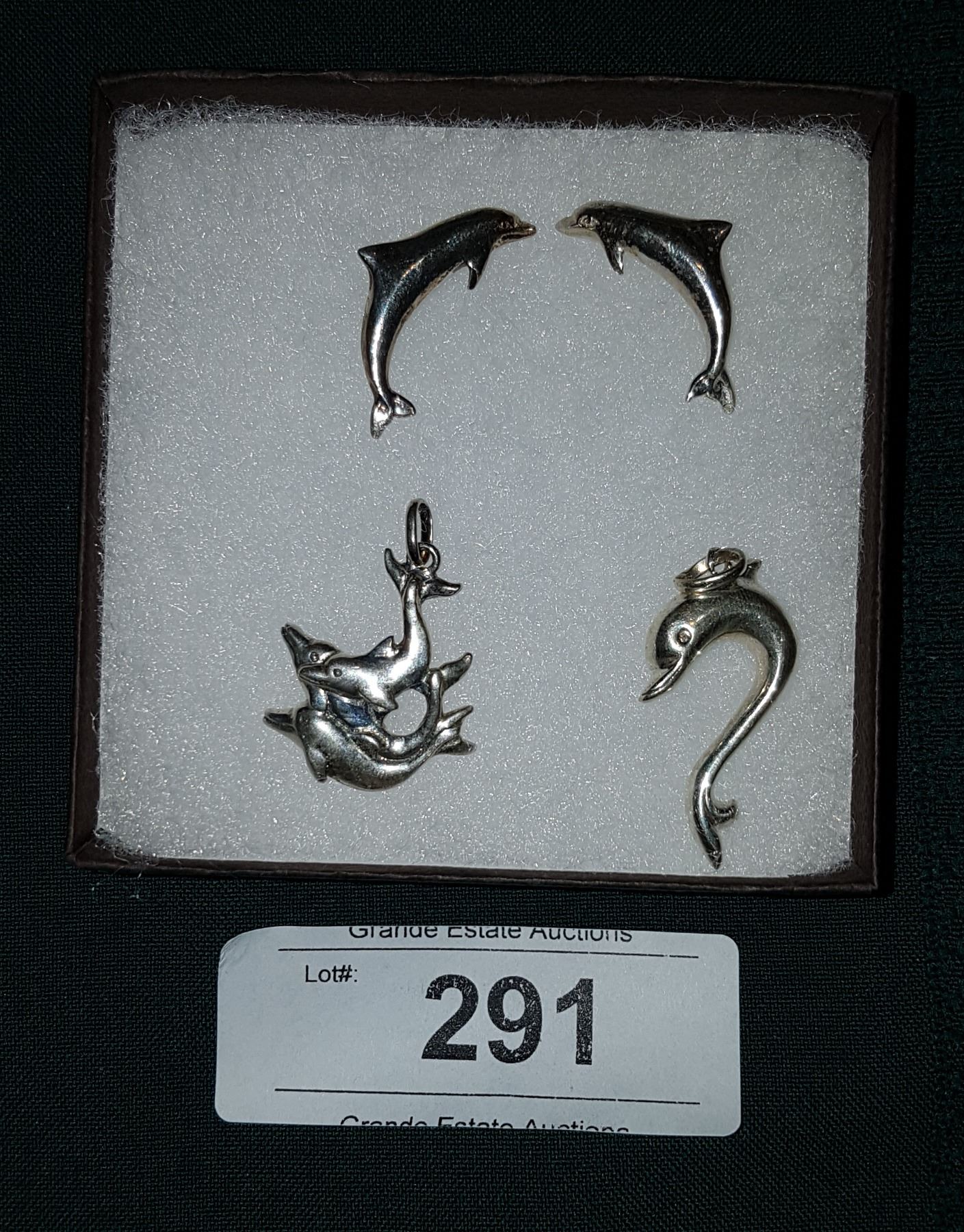 TWO STERLING SILVER DOLPHIN PENDANTS & SET EARRINGS