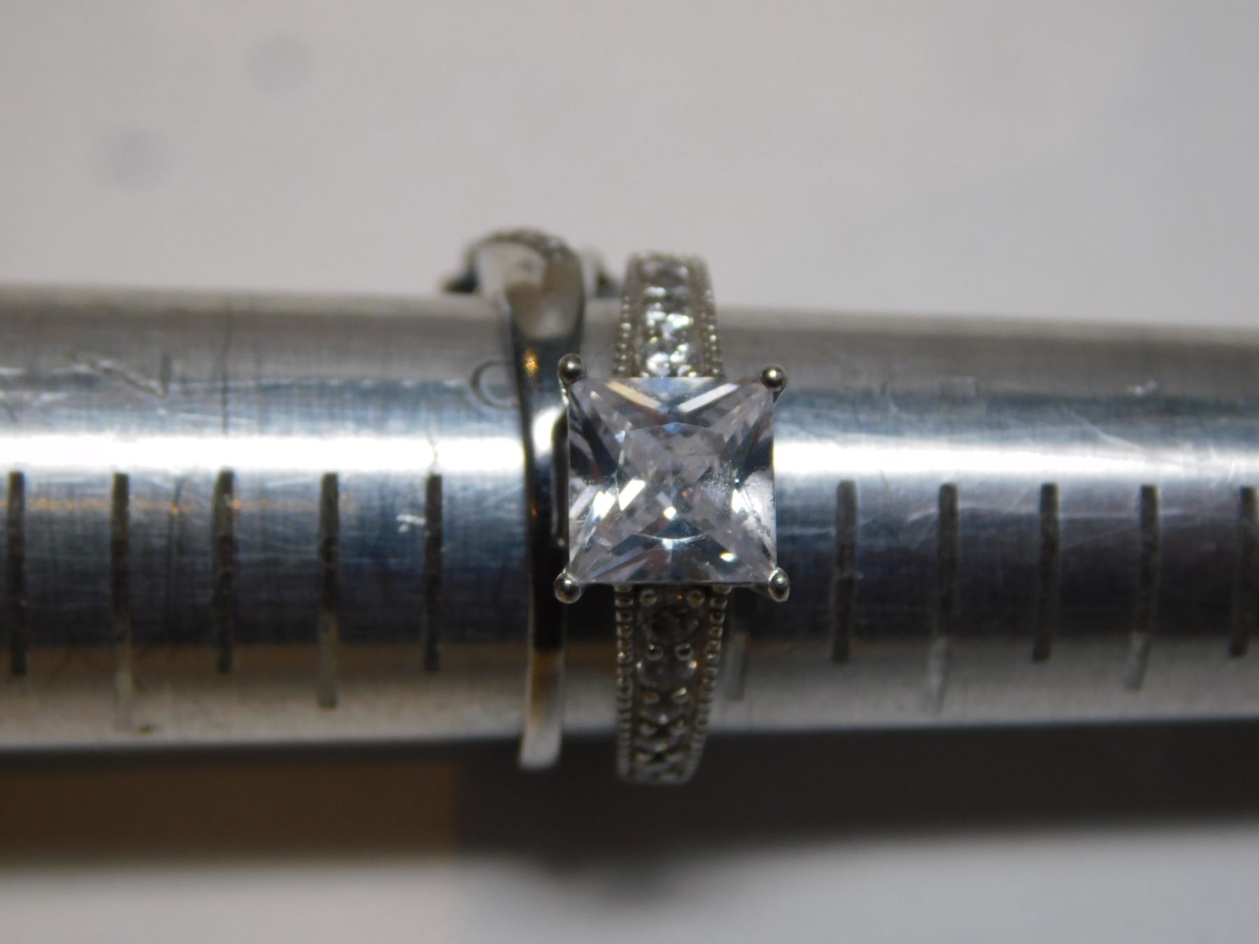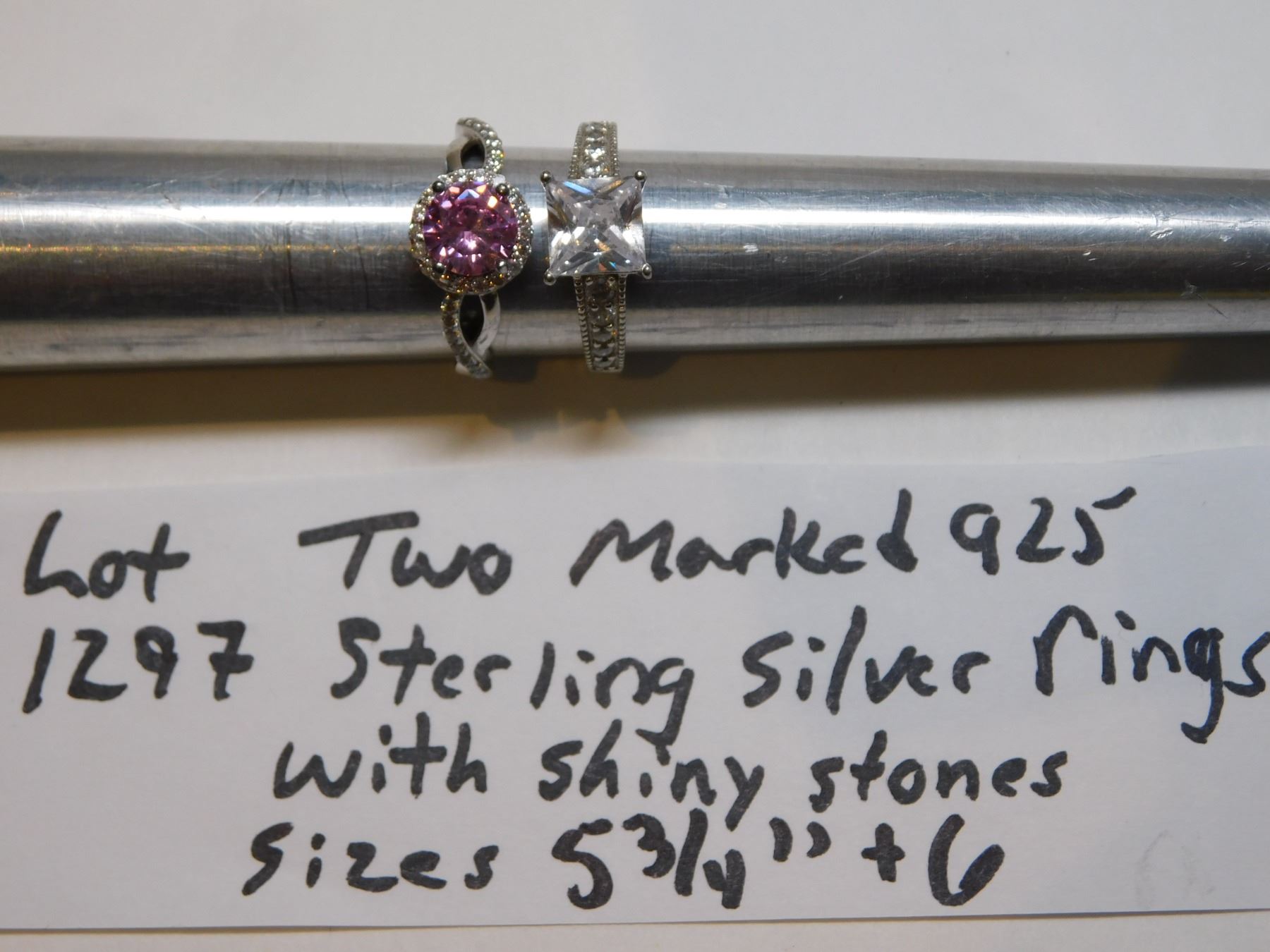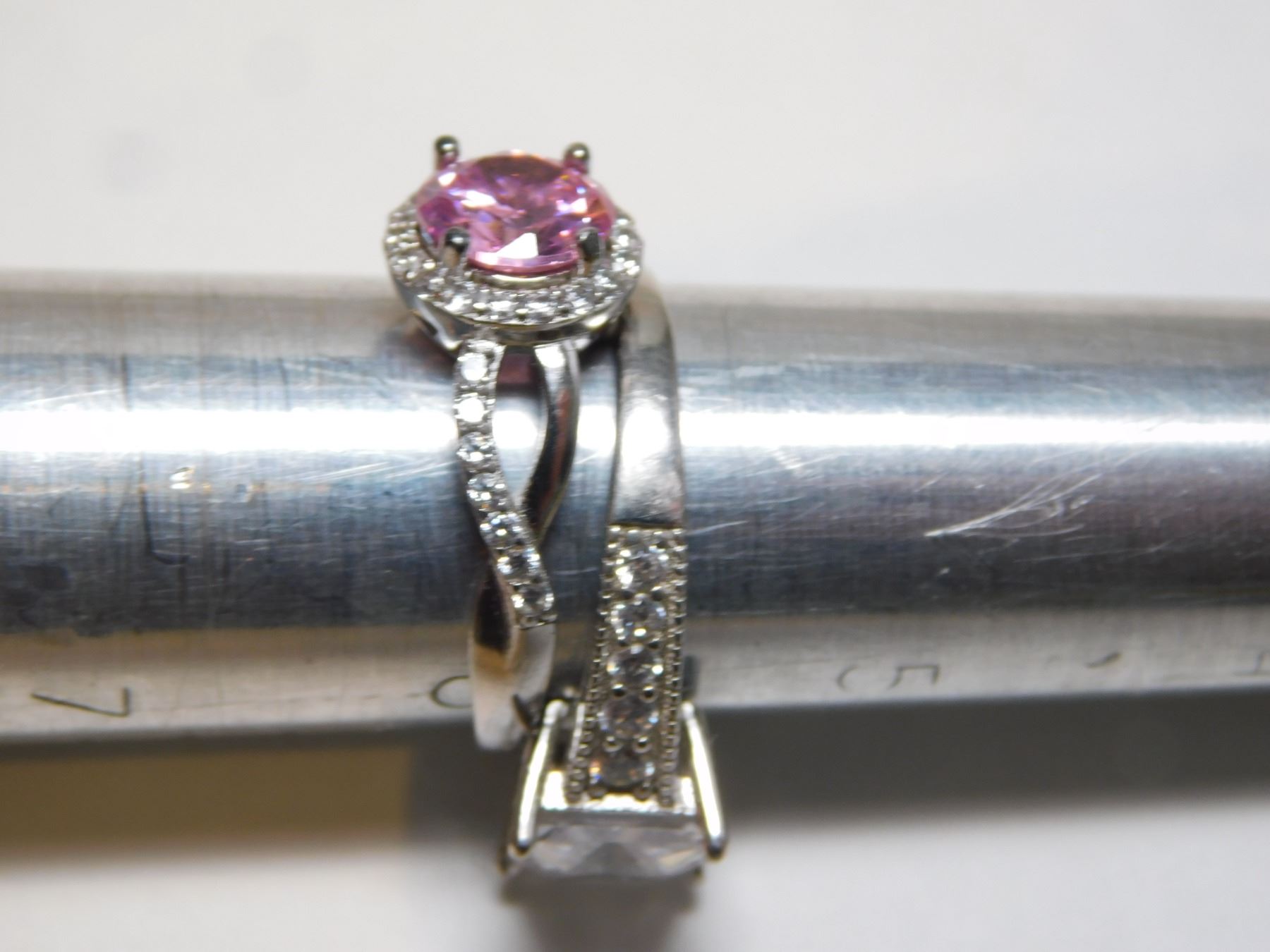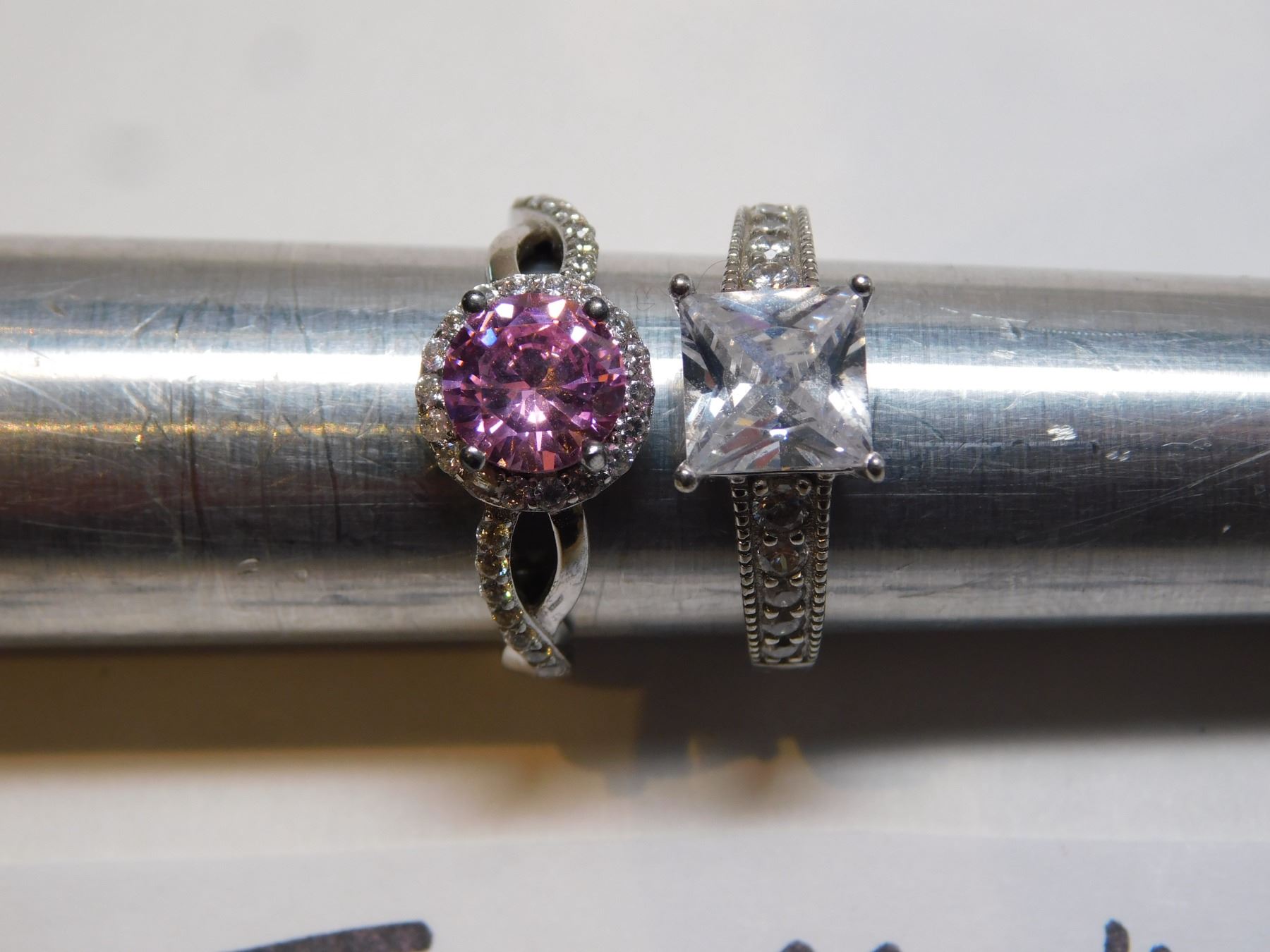 TWO STERLING SILVER RINGS WITH ONE PINK AND ONE CLEAR STONES SIZE 5 ¾ AND 6