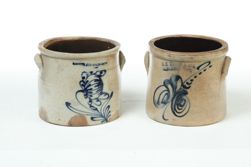 TWO STONEWARE CROCKS.