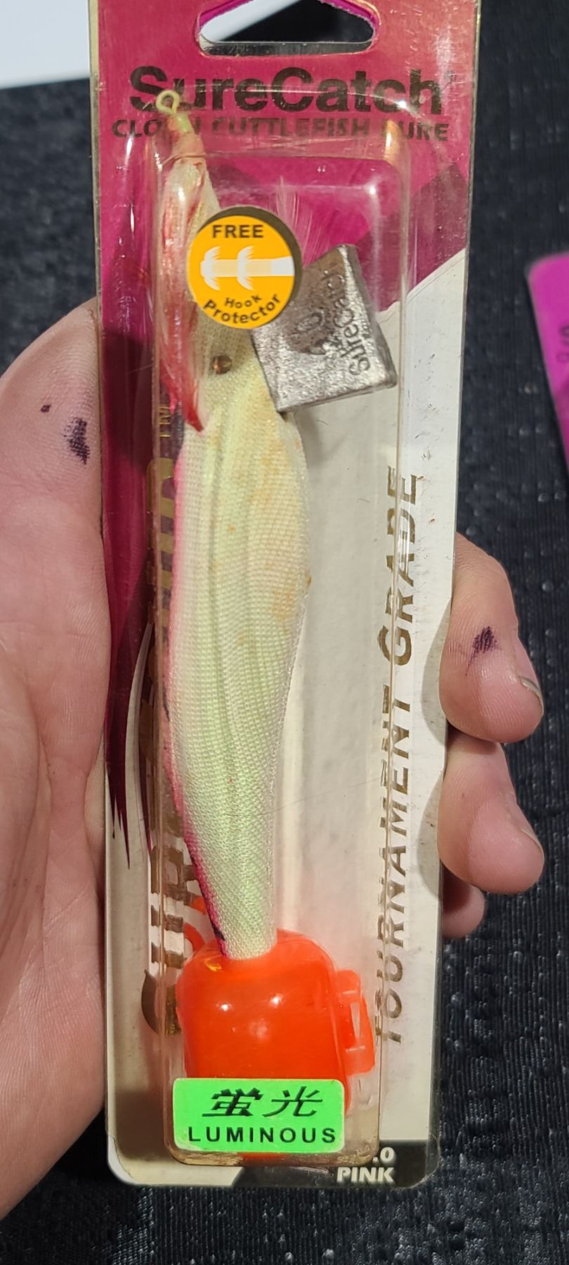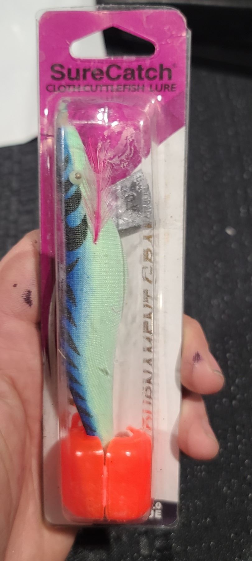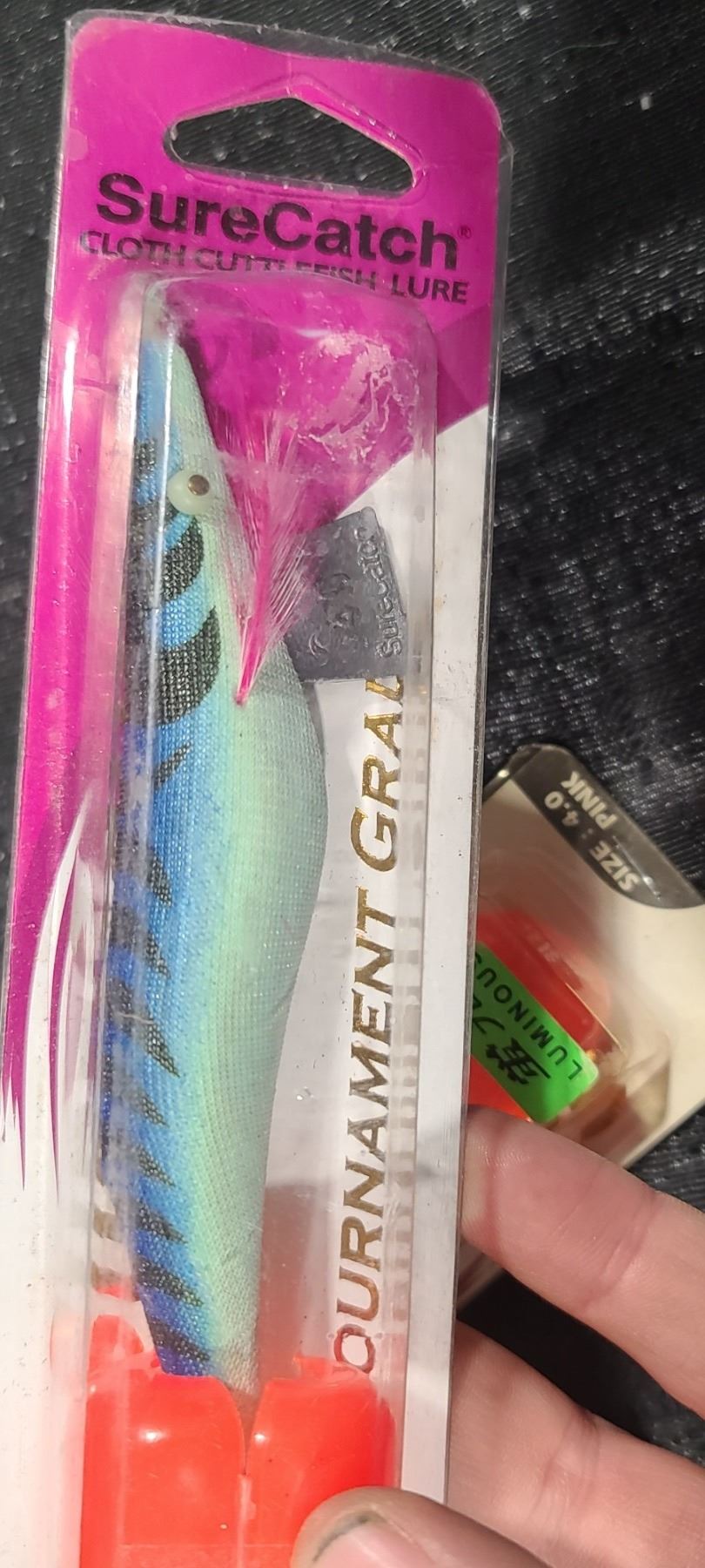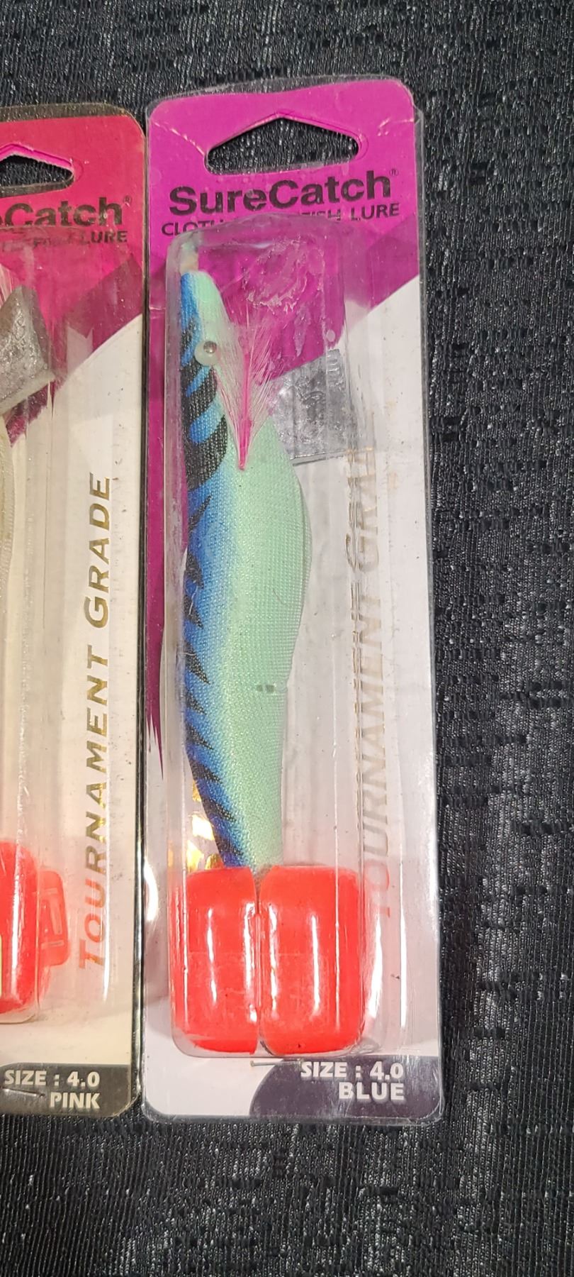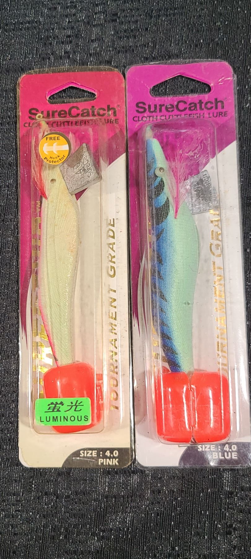 TWO SURE CATCH CLOTH CUTTLEFISH LURES SIZE 4 BLUE AND PINK