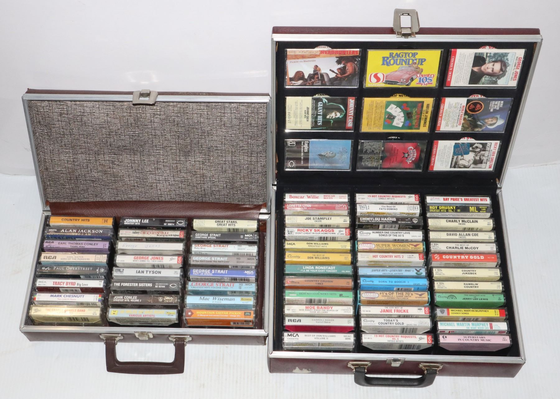 TWO TAPE CASSETTE CASES WITH 69 CASSETTES,