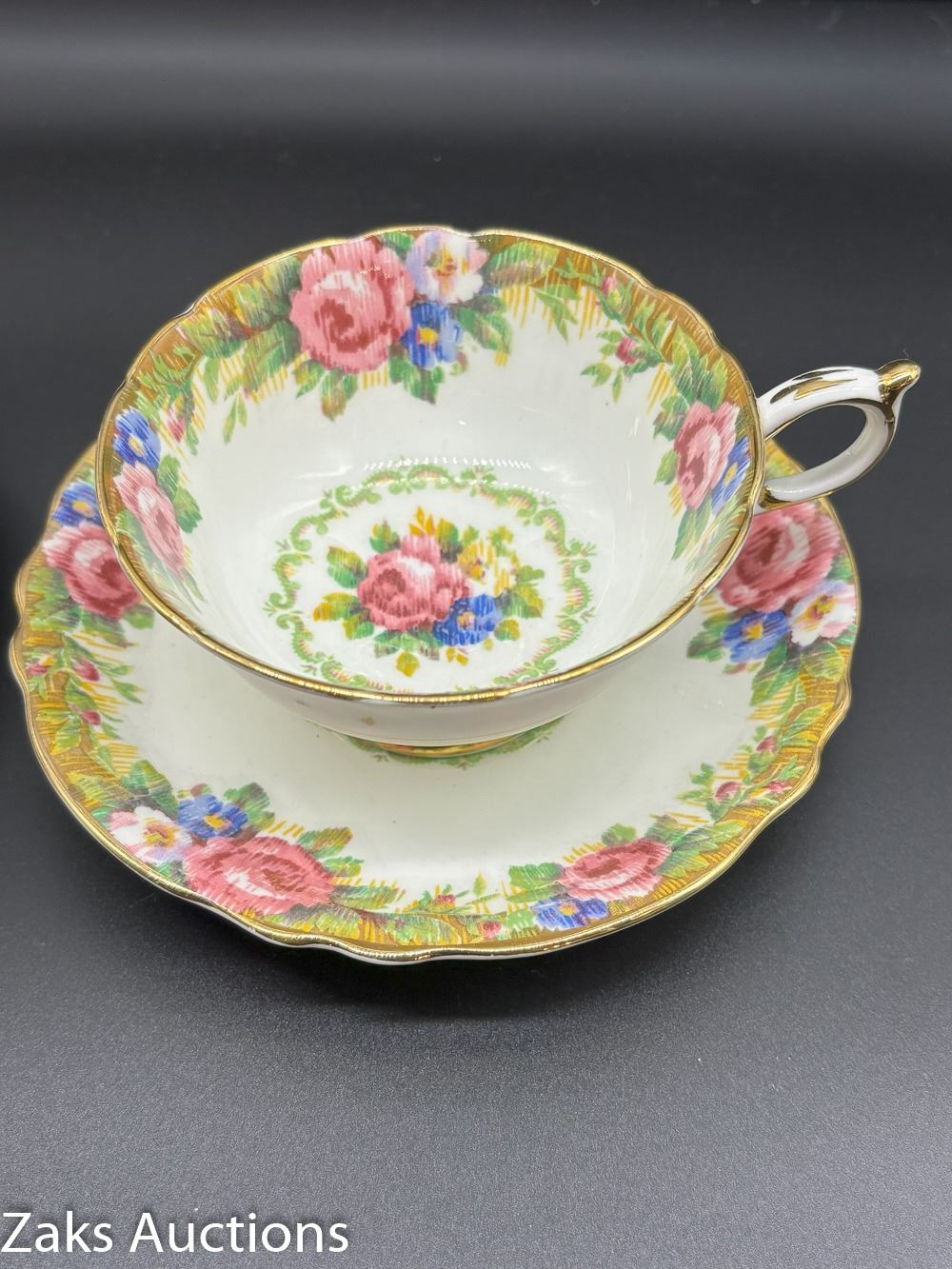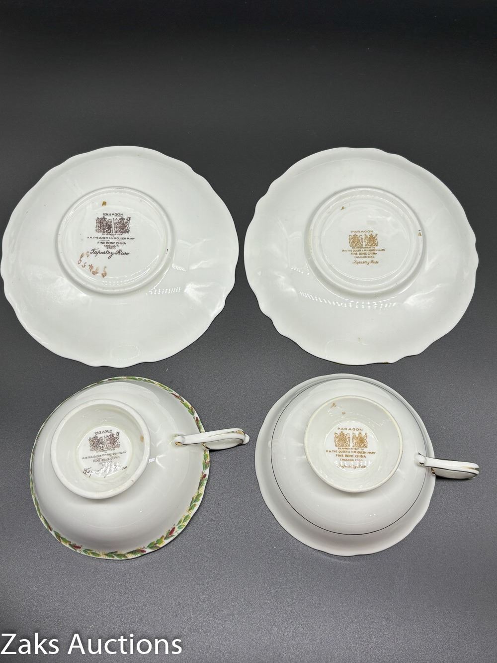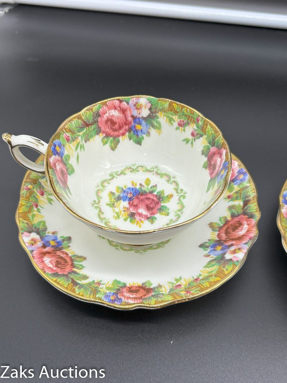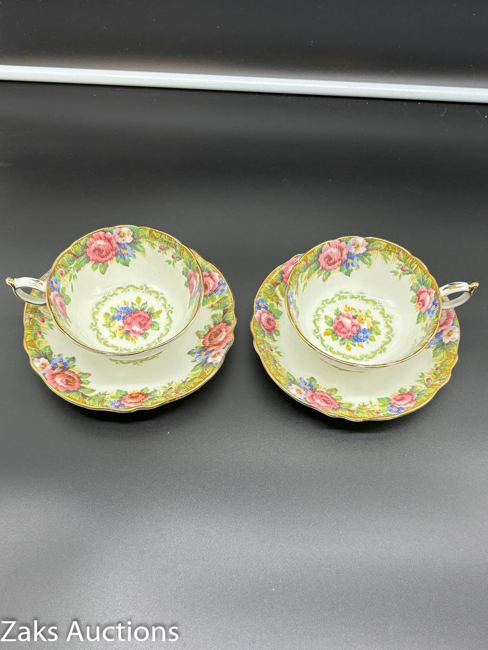 PAIR OF TAPESTRY DOUBLE WARRANT PARAGON TEA CUPS