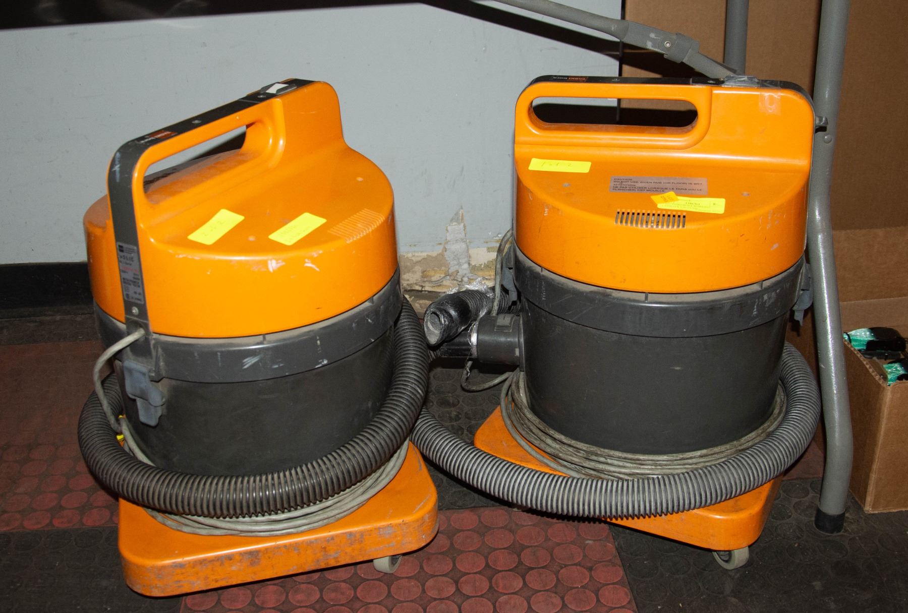 TWO TASKI BORA WORKING CANISTER VACUUMS