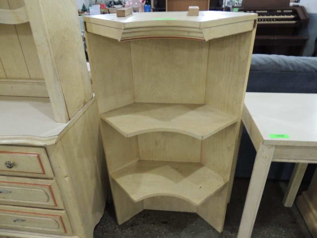 TOPP OF CABINET, TWO TIER CORNER TOP, DECORATIVE SHABBY CHIC AS SHOWN SEE PHOTO FOR MORE DETAILS.