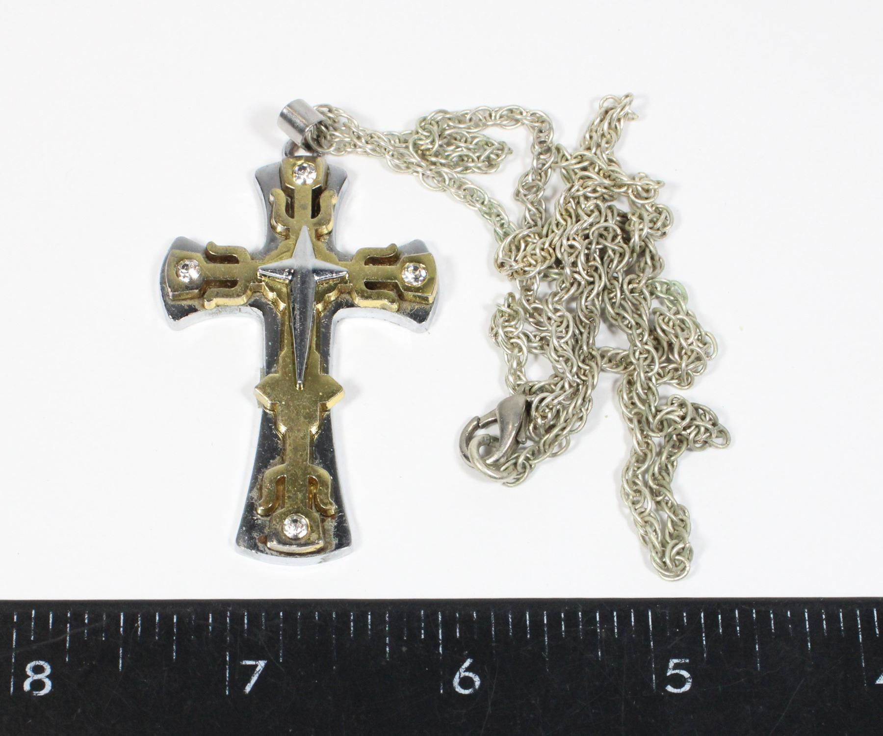 TWO TONE CROSS WITH RHINESTONE ACCENTS PENDANT