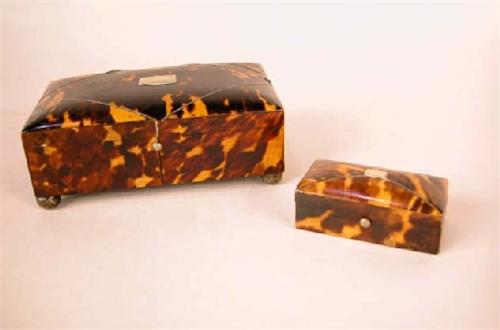 TWO TORTOISESHEL RECTANGULAR HINGED BOXES; Longer 5"l, losses & repair