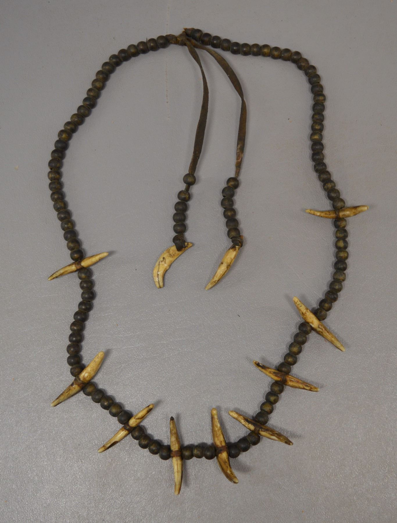 20th century two strand of nut's/berries 28" long, single strand of metal beads and teeth 26" long