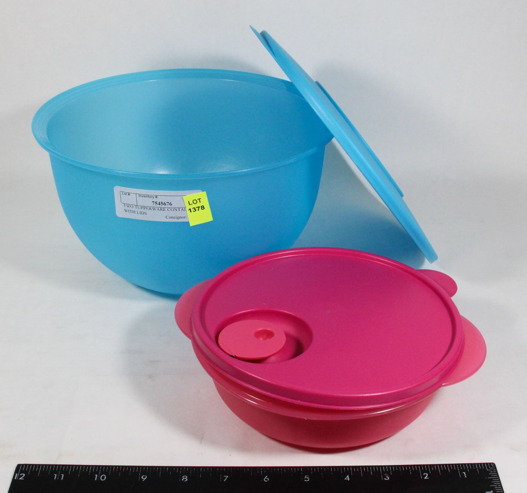 TWO TUPPERWARE CONTAINERS WITH LIDS