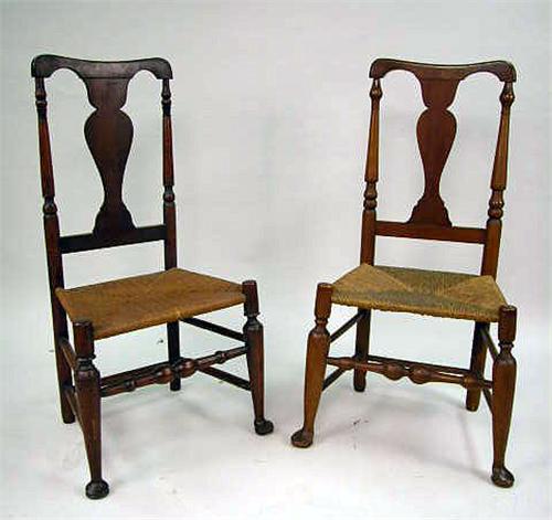 TWO TURNED AND FIGURED MAPLE RUSH SEAT SIDE CHAIRS; Hudson River Valley, some wear