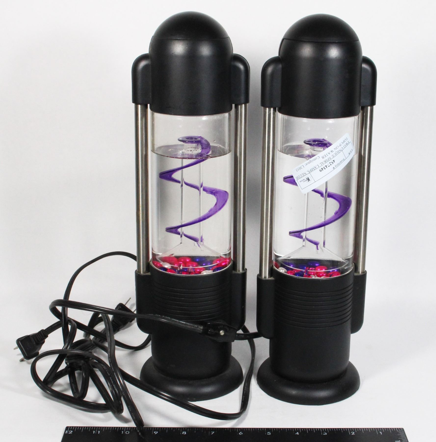 TWO UNIQUE SPIRAL LAMPS. NEEDS TOPUP ON WATER