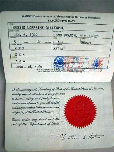 TWO UNITED STATES OF AMERICA PASSPORTS Each issued to Lorraine Gillespie, one from 1960, and the sec