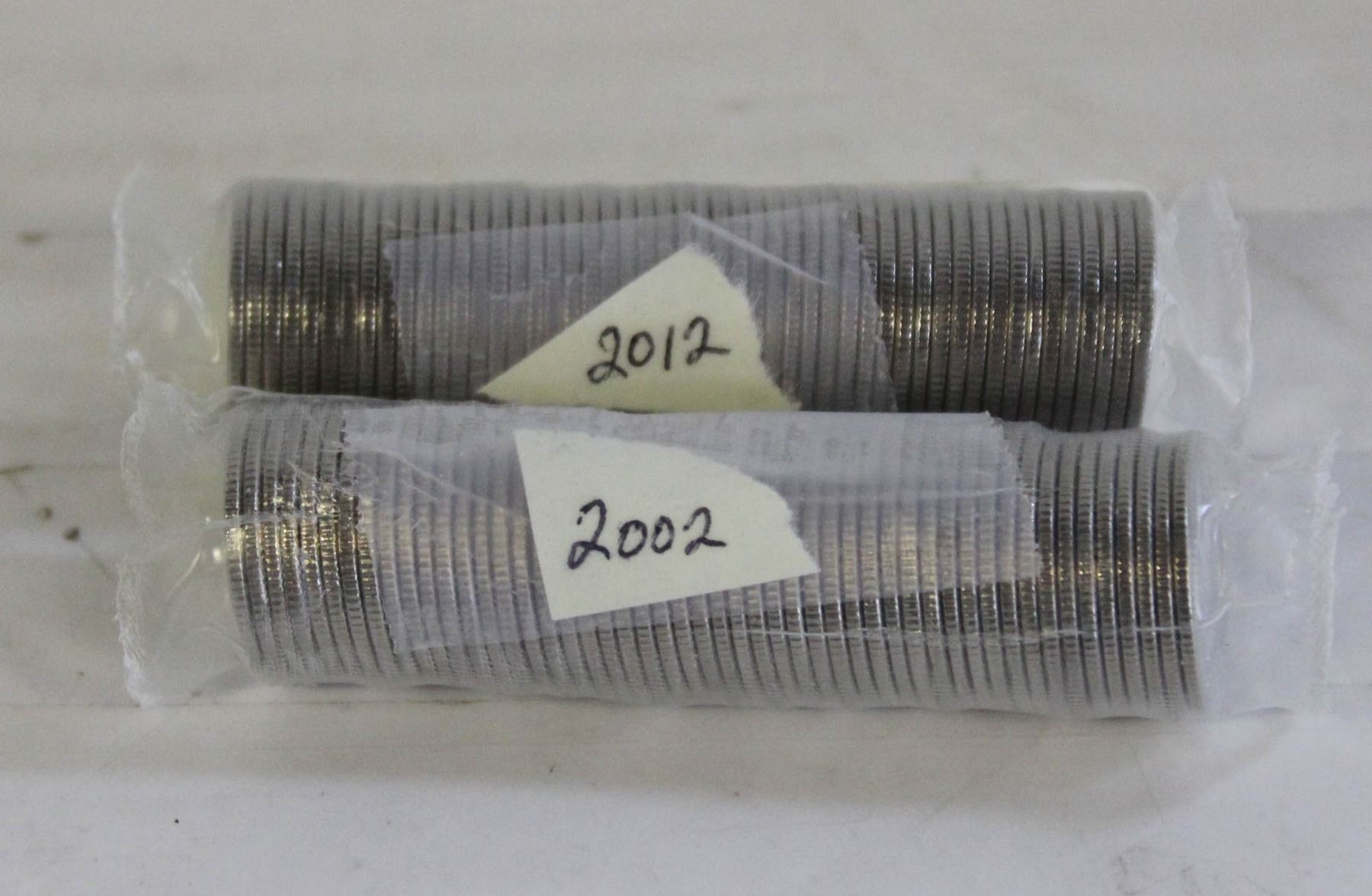 TWO UNOPENED BANK ROLLS OF 2002 & 2012 $0.10