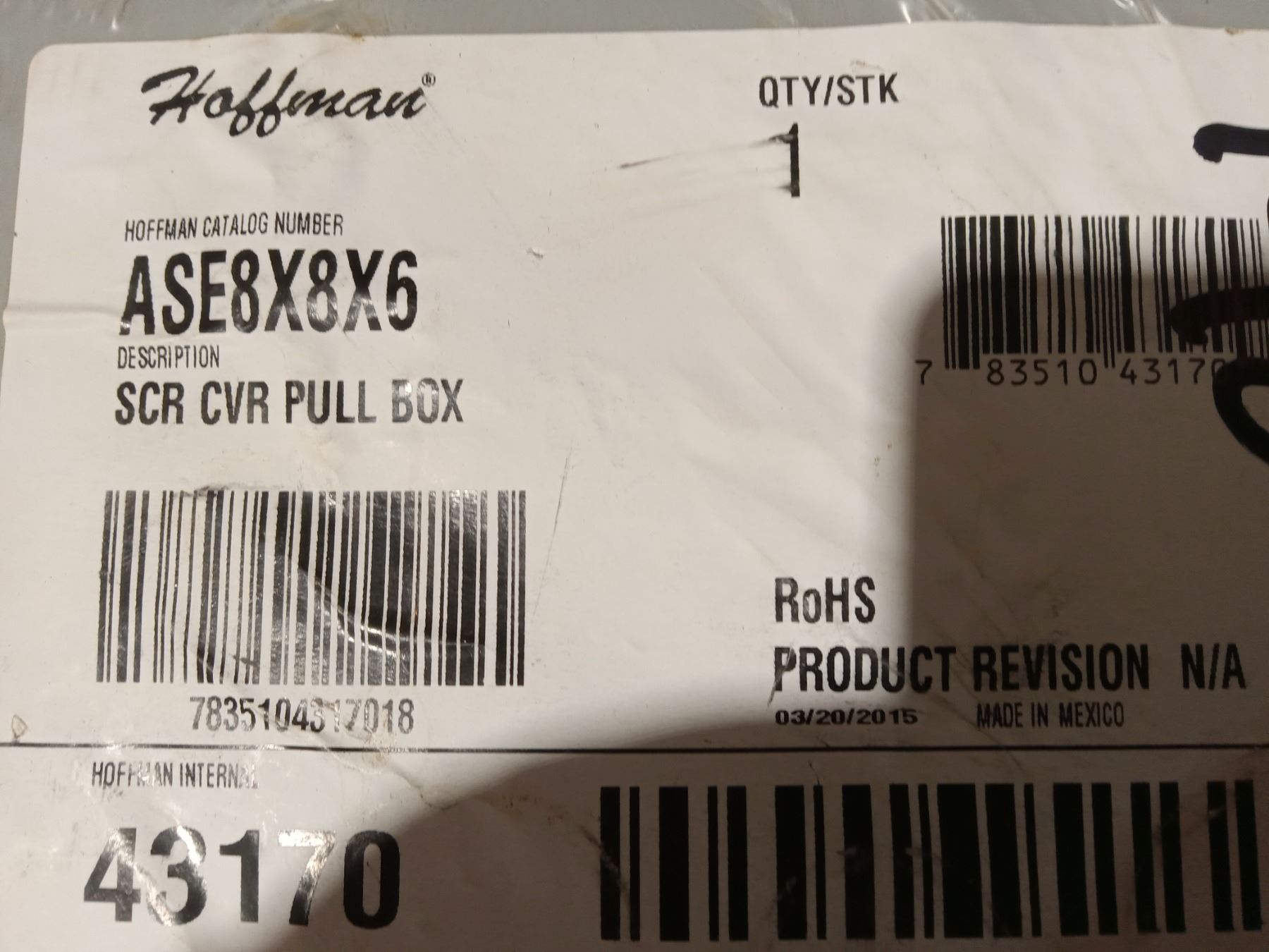 TWO UNUSED HOFFMAN ASE 8X8X6 ELECTRICAL BOXES 43170