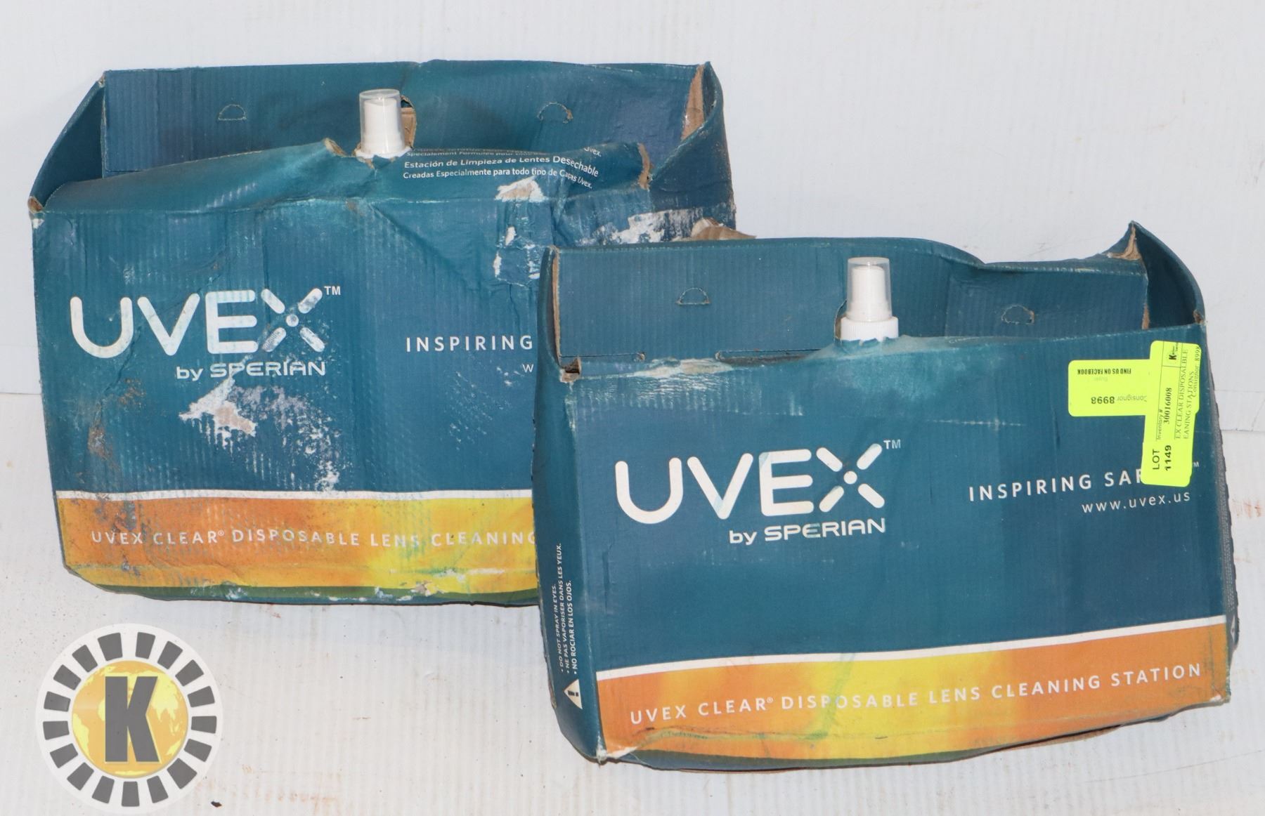 TWO UVEX CLEAR DISPOSABLE LENS CLEANING STATIONS
