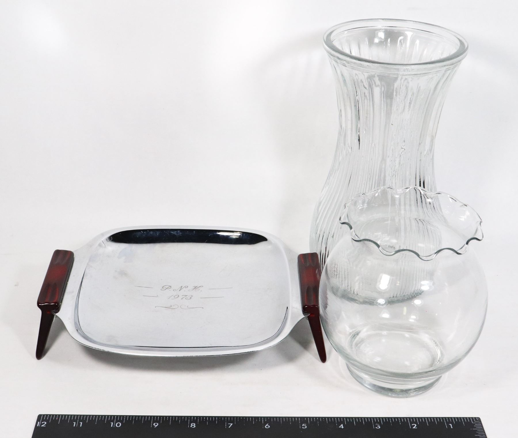 TWO VASES SOLD WITH SERVING DISH