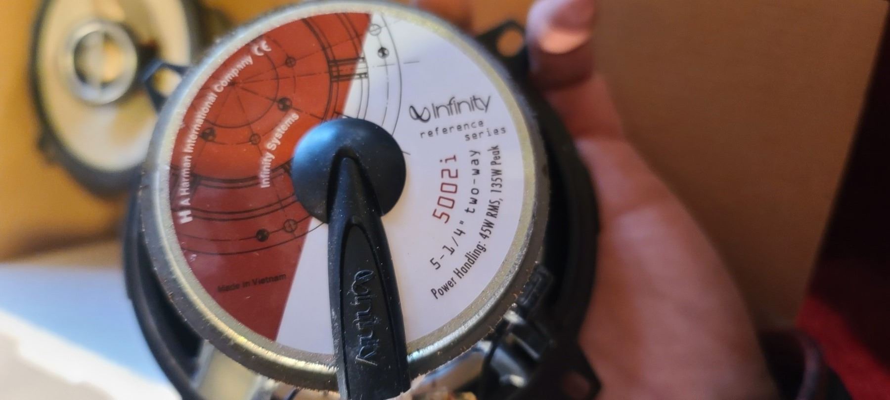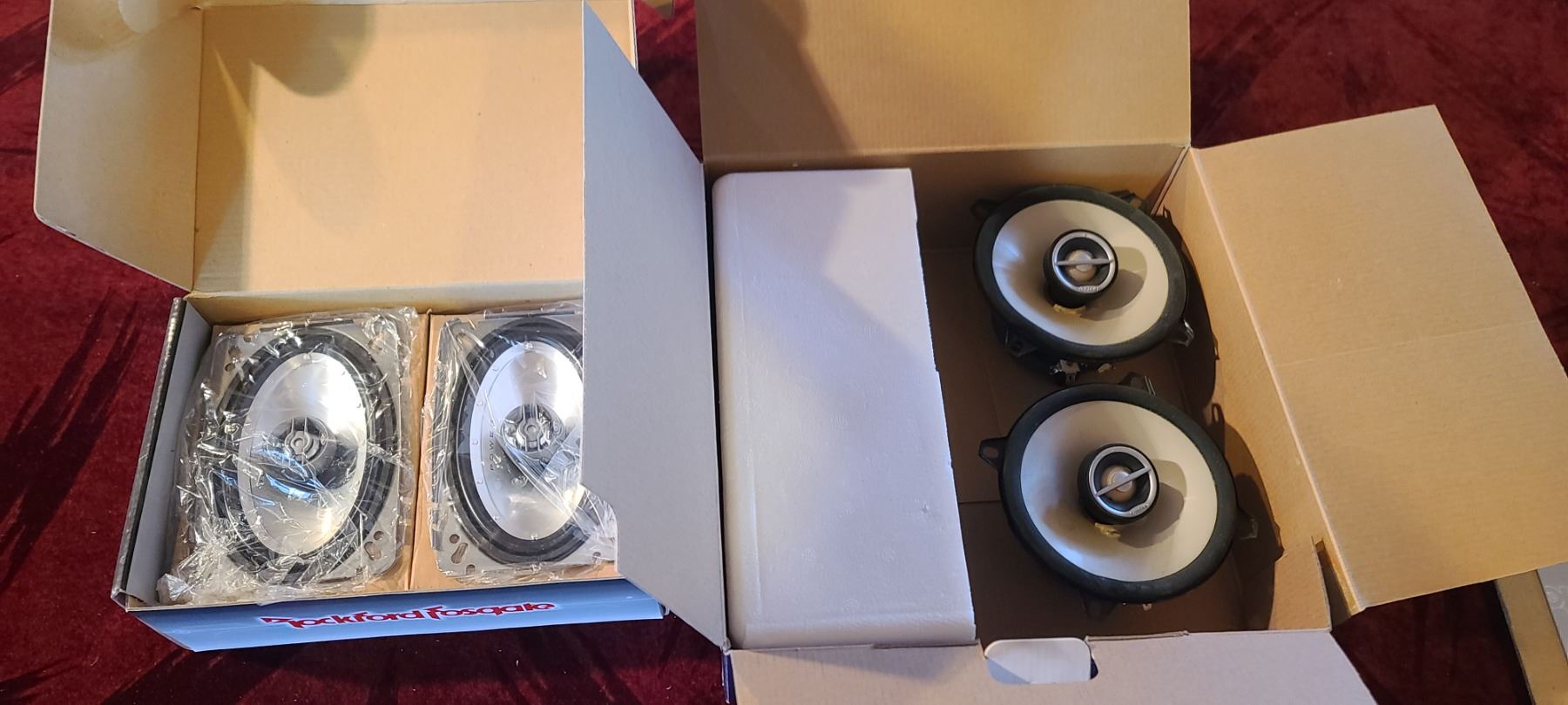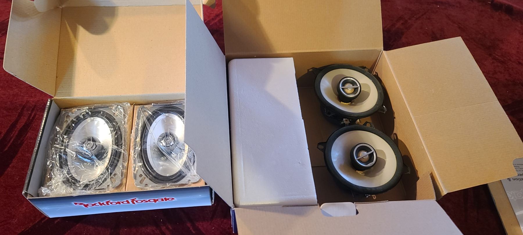 TWO VEE POWERED SPEAKERS, ALPINE, TWO ROCKFORD, COAXIAL T1462C SPEAKERS