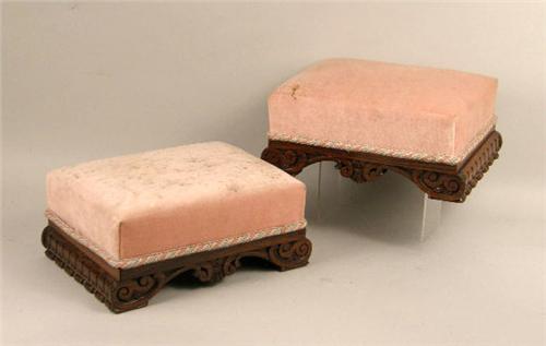 <b>TWO VICTORIAN CARVED ROSEWOOD AND VELVET UPHOLSTERED FOOTSTOOLS</b>