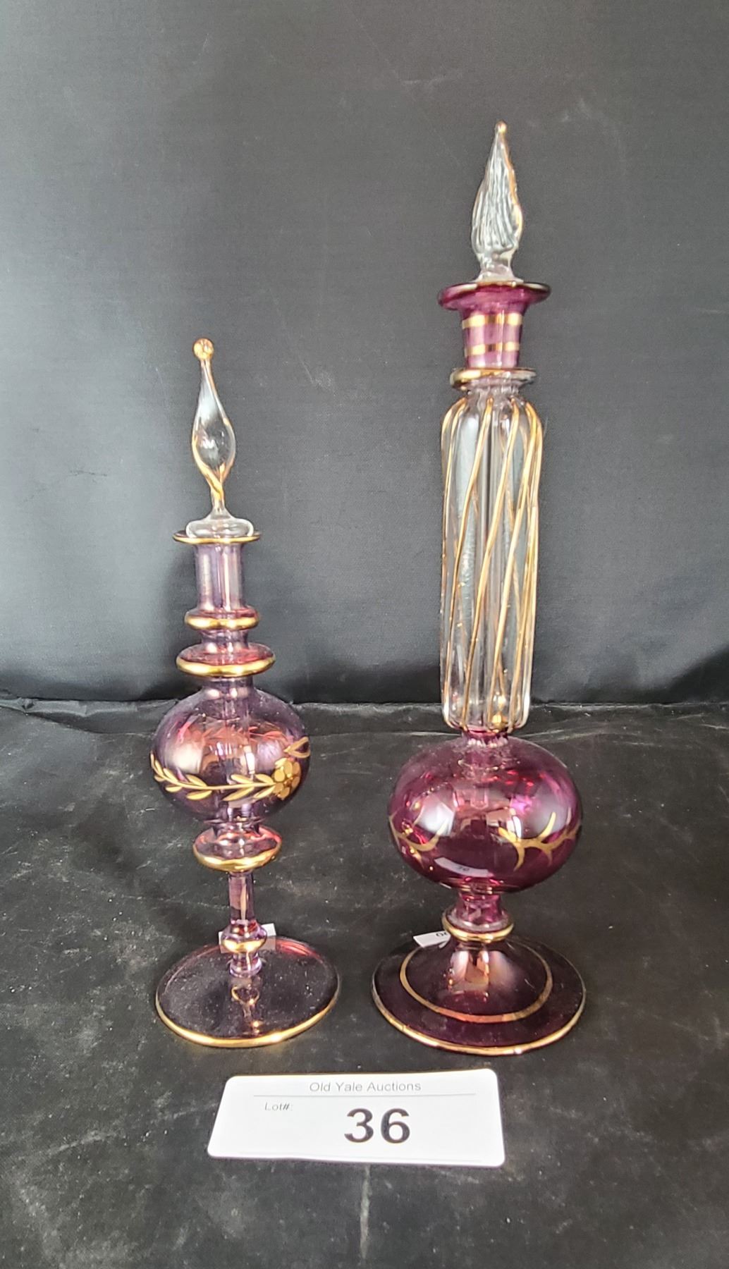 TWO VINTAGE ART GLASS PERFUME BOTTLES