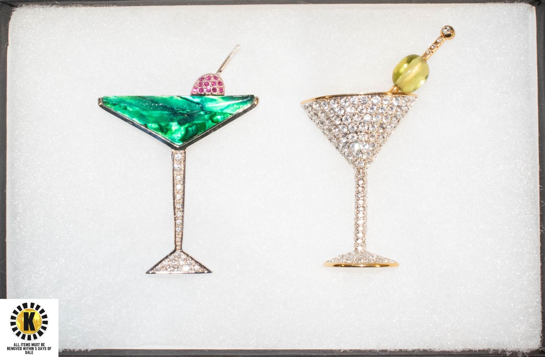 MARTINI GLASS BROOCHES - BOTH SIGNED "BUTLER"