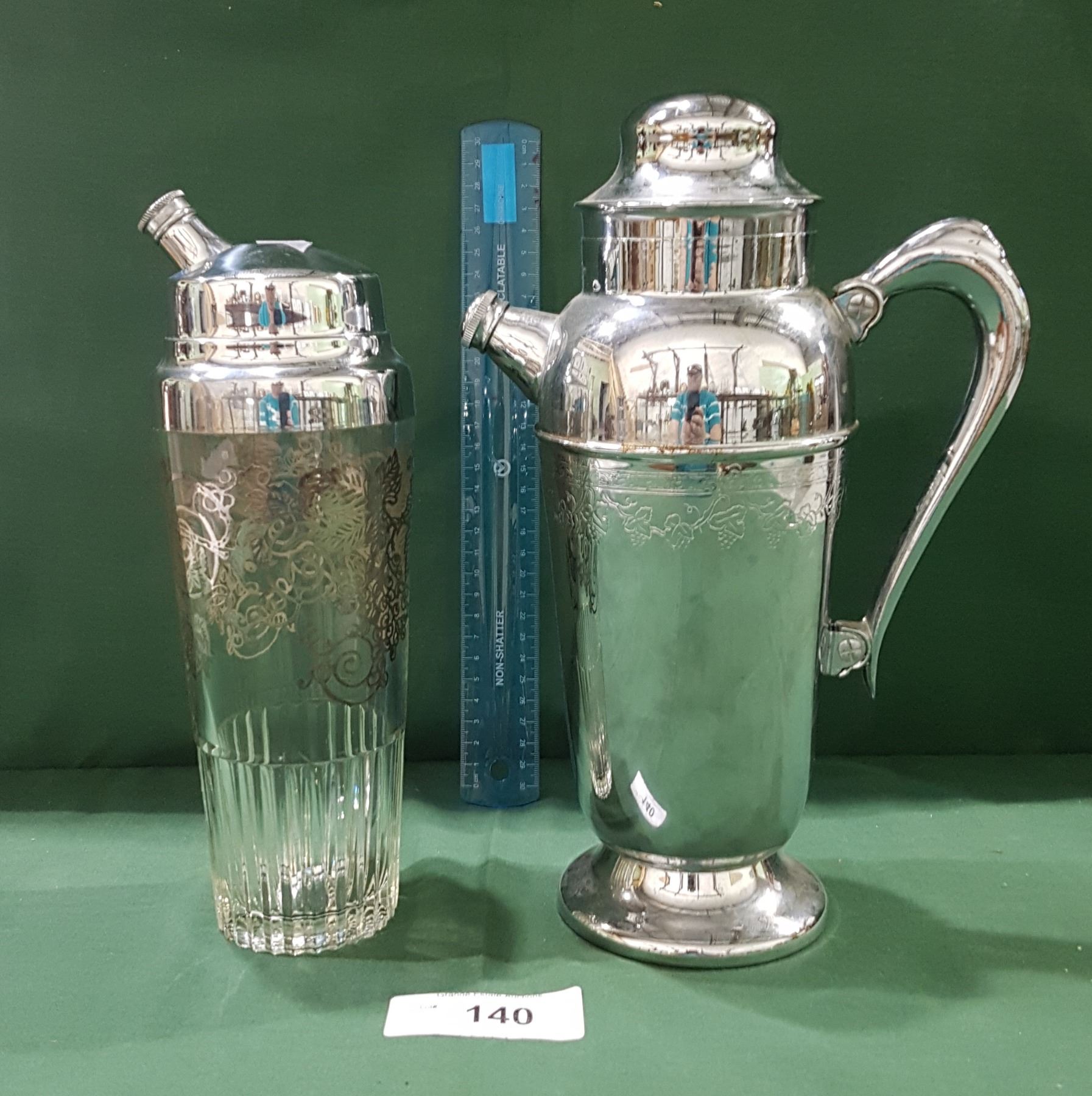 TWO VINTAGE CHROME MARTINI SHAKER & COFFEE POT