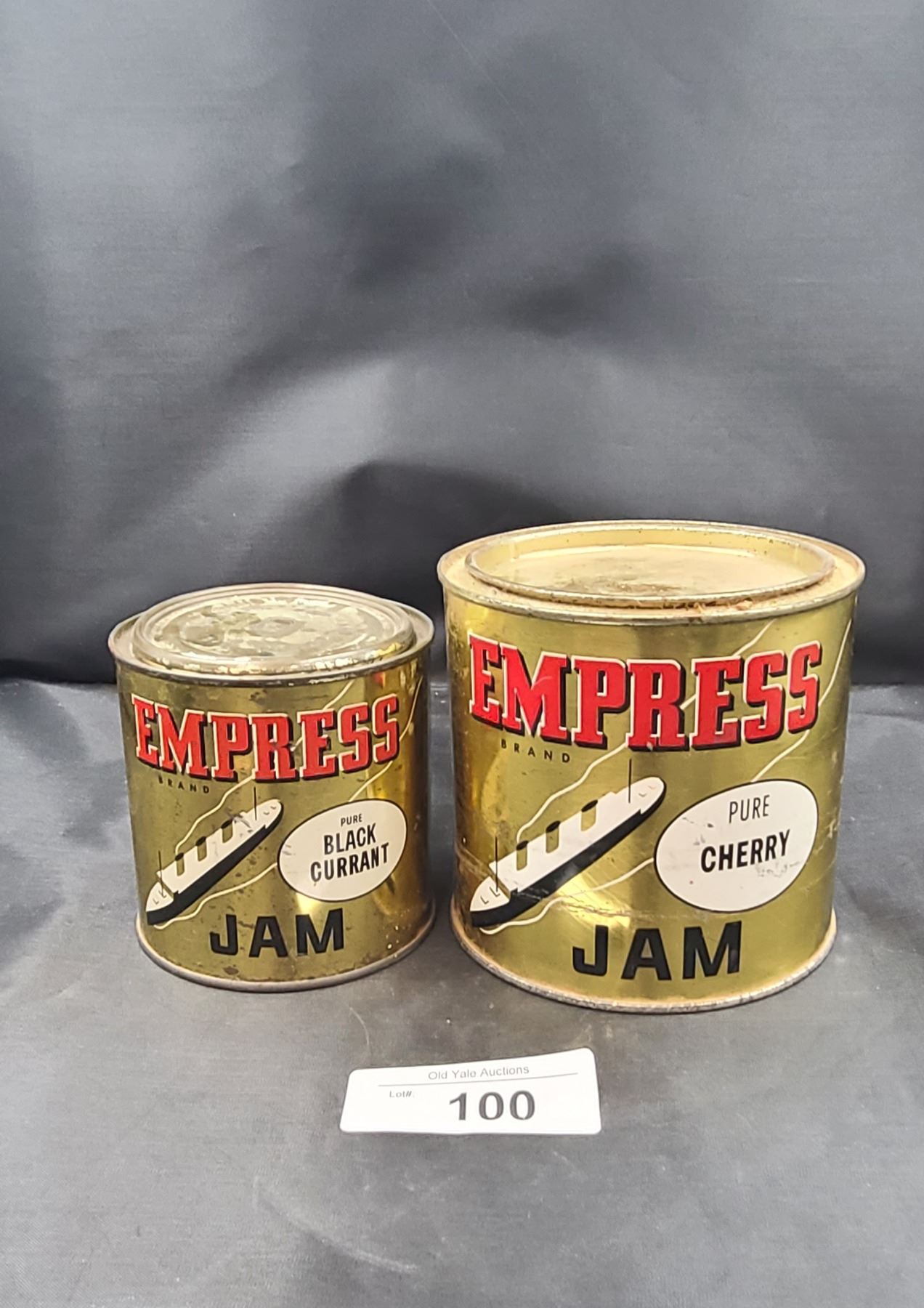 TWO VINTAGE EMPRESS JAM CANS