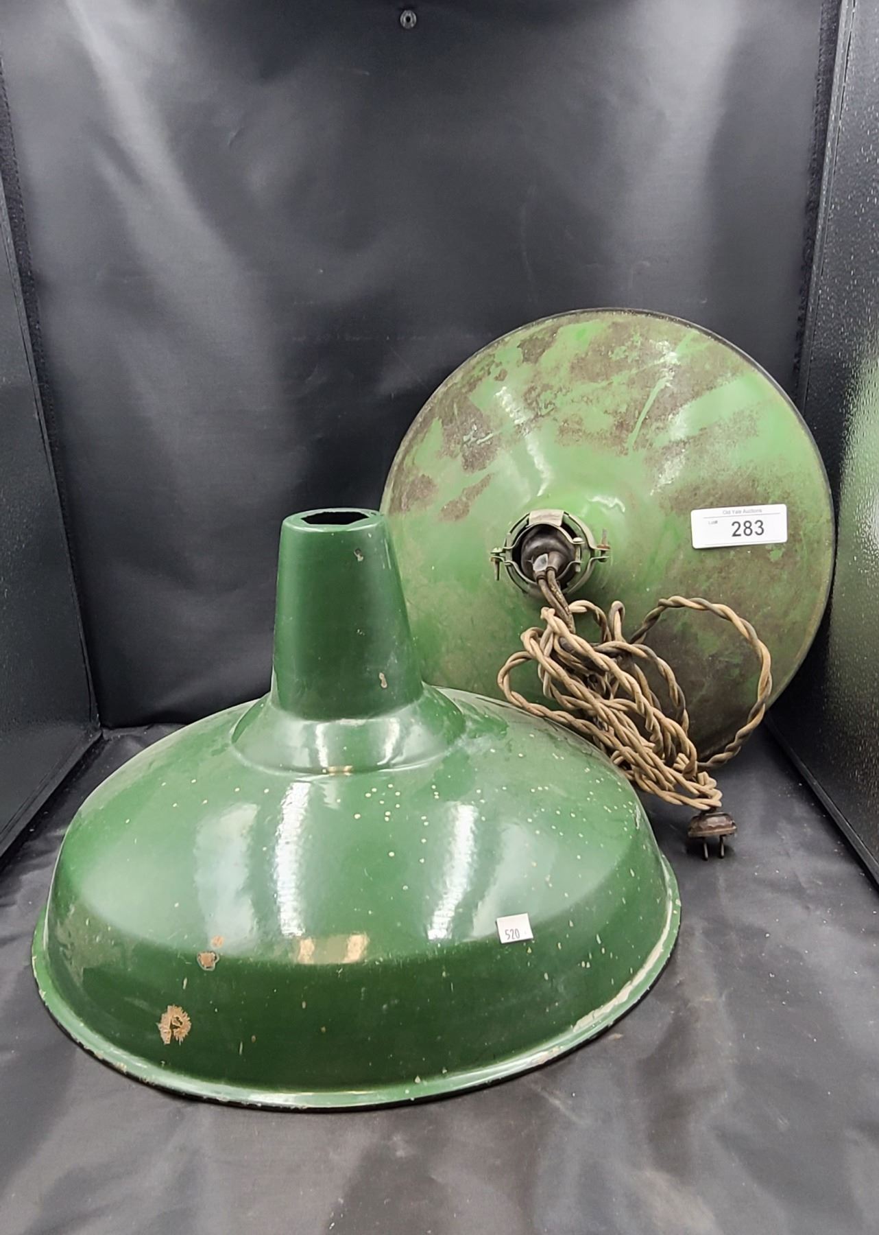 TWO VINTAGE ENAMEL INDUSTRIAL LIGHT SHADES