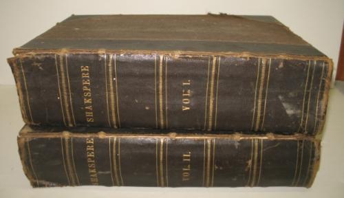THE WORKS OF SHAKESPERE. Imperial Edition. Edited by Charles Knight. Published by Virtue & Yorston, 12 Dey Street, New York. 2 Volumes. Published after the 1843 original edition. Binding and leather show signs of wear.
