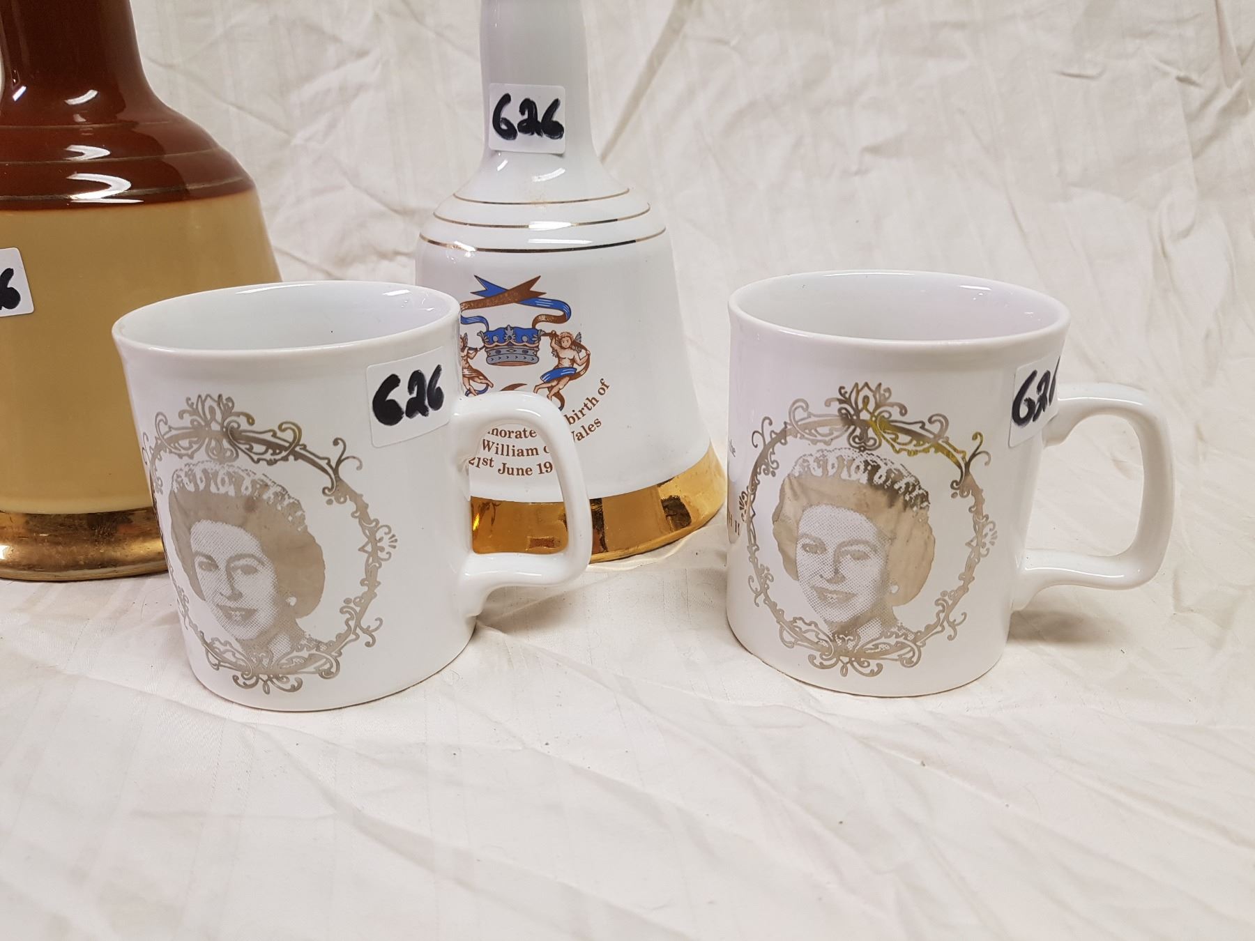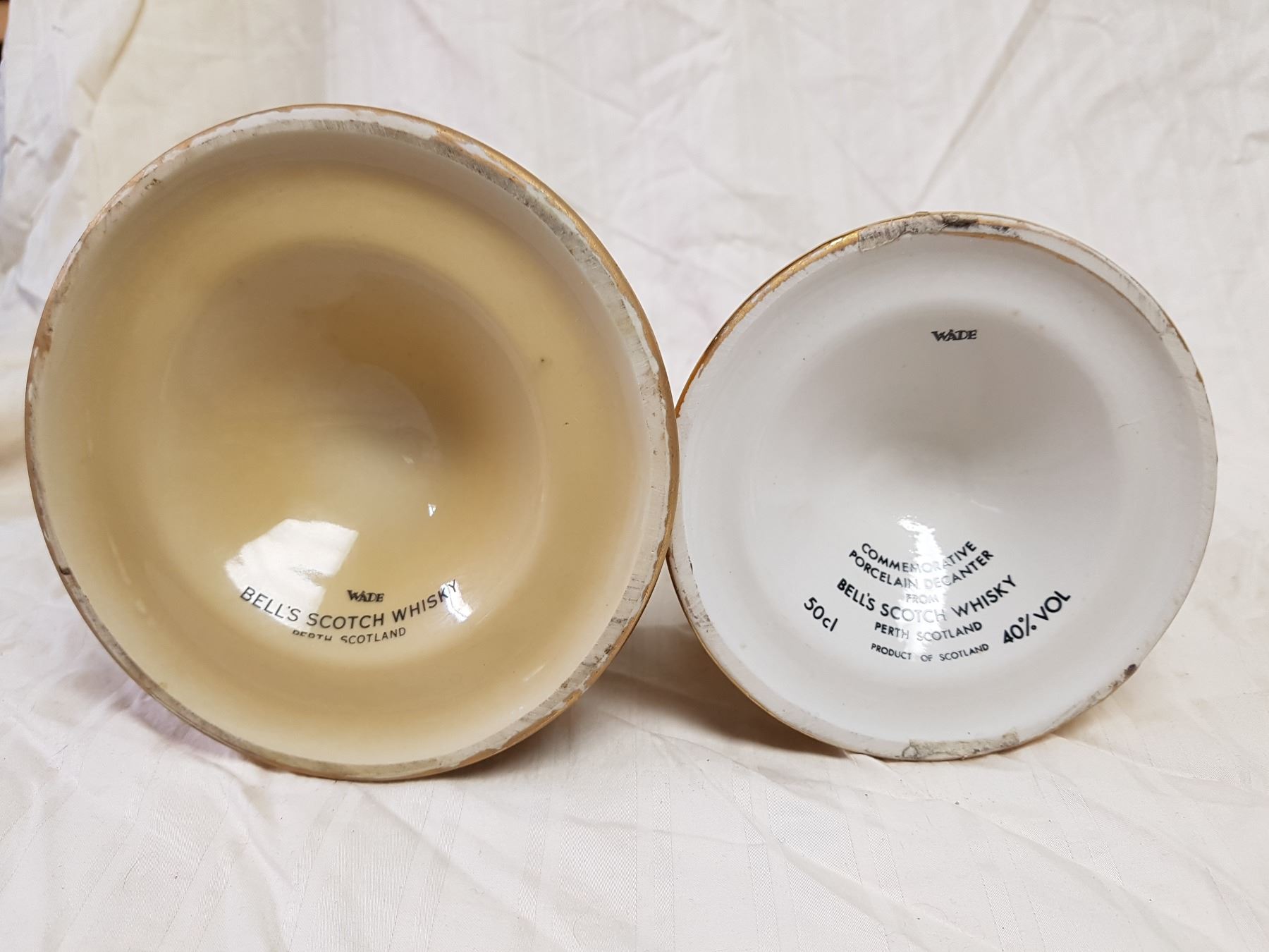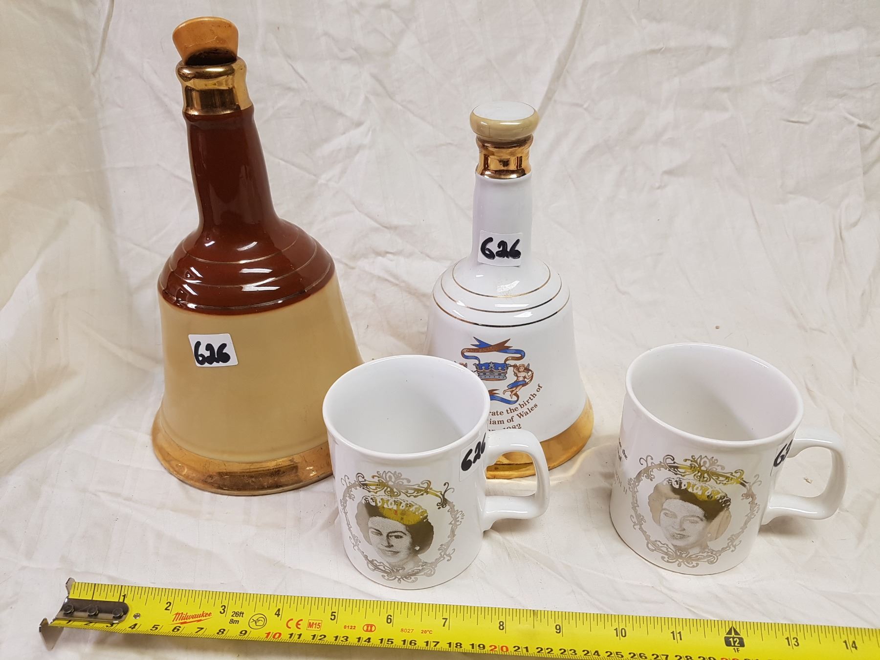 TWO WADE BELLS WHISKEY BOTTLES AND ROYALTY CUPS