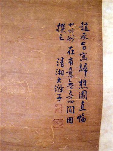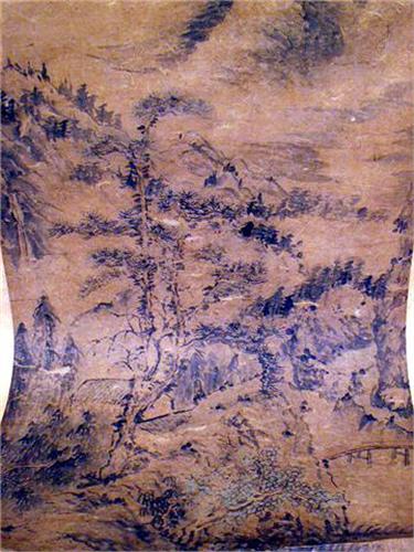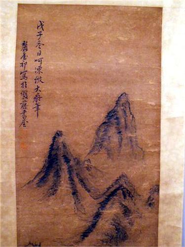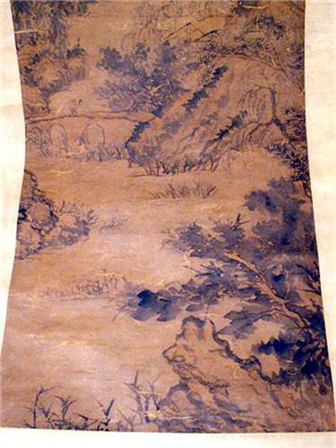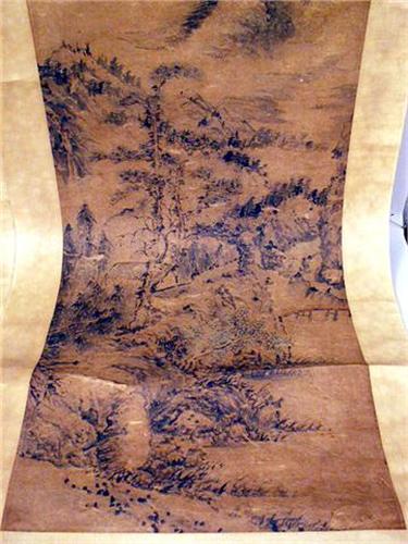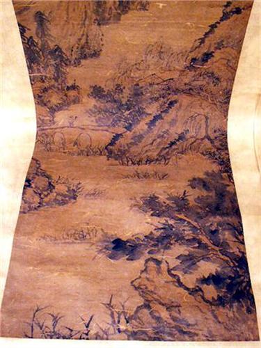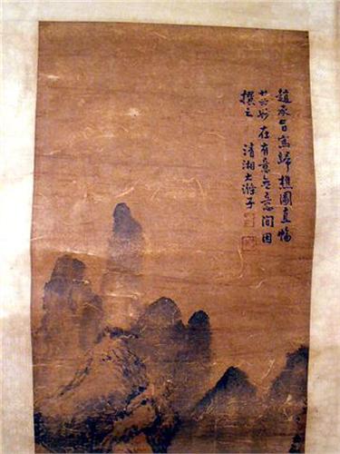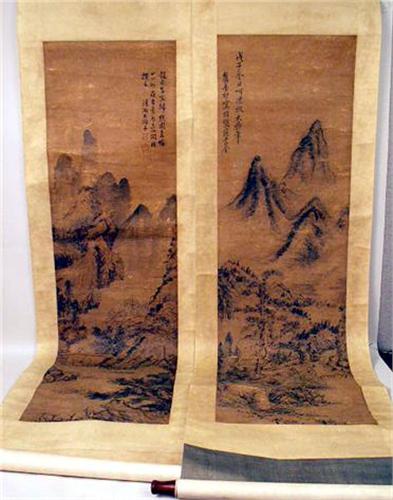 Chinese, each depicting landscapes, one attributed to Wan Yaunqi (1642-1715), date 1708, the other attributed to Shi-Tao (1630-1742). Discoloration, some creasing and folding, one scroll with loss on silk backing approximately 10 inches from image. From 4`5 1/2"h x 15"w to 4`6"h x 16"w.