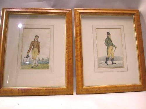 TWO WATERCOLORS OF DAPPER GENTLEMEN; Probably American, each in bird's eye maple frames 9 3/4"h x 6"w
